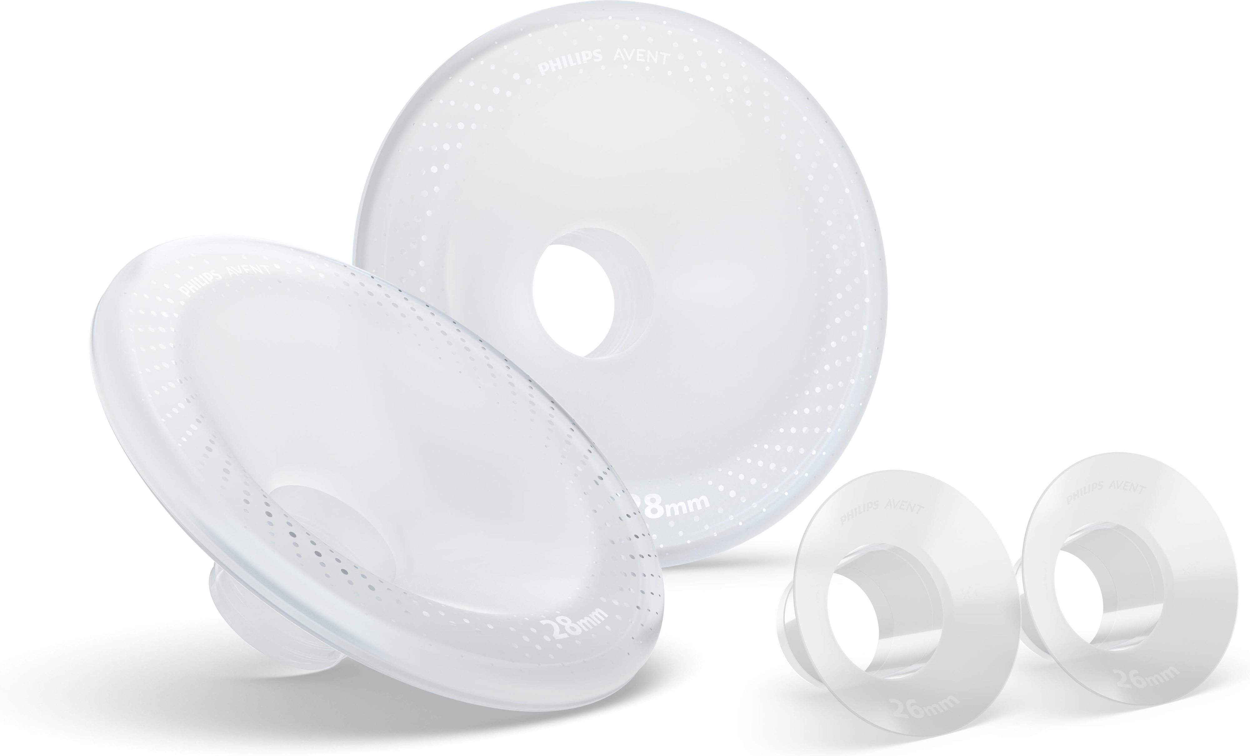 The 28mm breast pads with 26mm inserts are specifically designed for larger breasts and breastheads. This size complements Philips' extensive range, which is suitable for 99% of mothers. Using the right sized breastpads and inserts supports safe and comfortable pumping, which is key to efficient milk production.