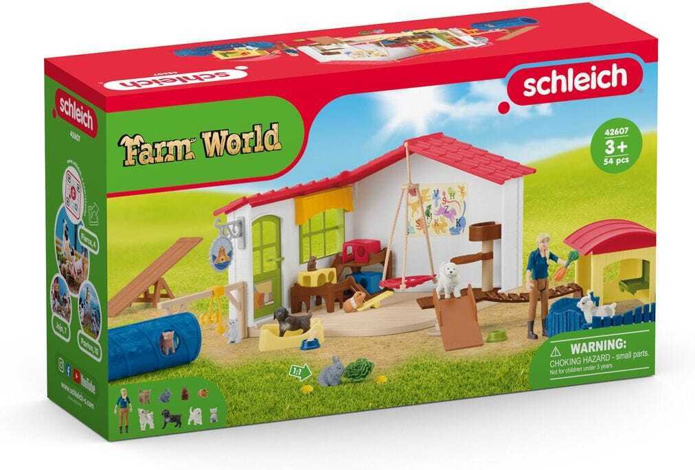 Pets can spend their holidays in the Schleich Farm World 42607 Pet Hotel!