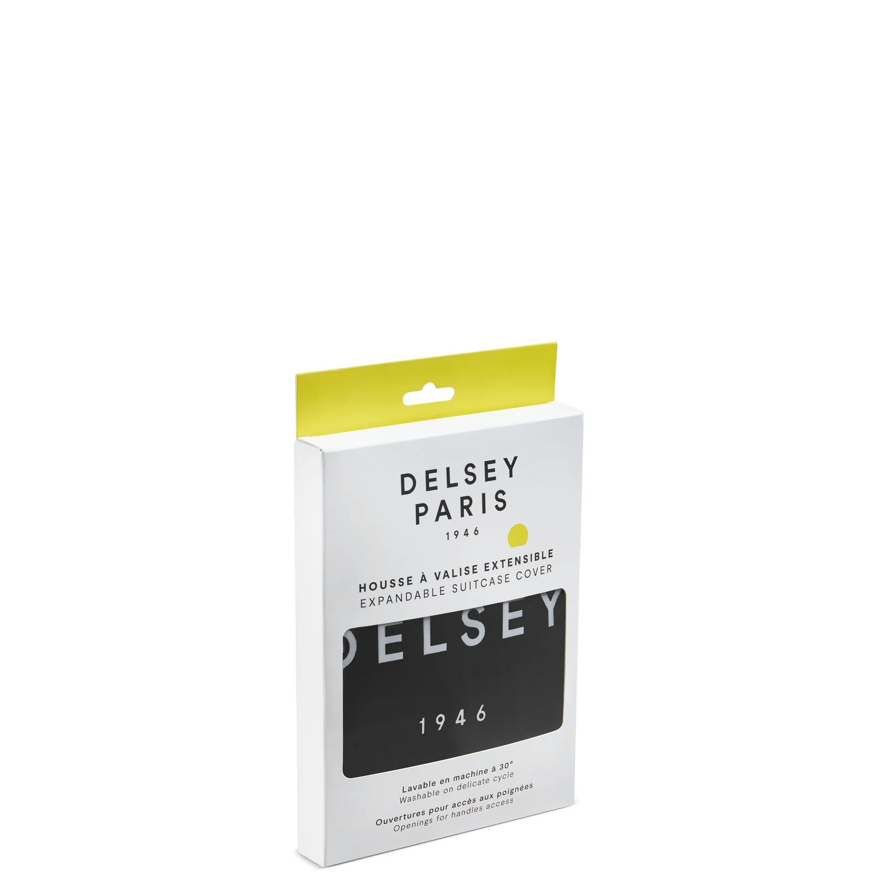 The Delsey suitcase cover in a compact size provides practical protection for your suitcase. The cover is made of a flexible material that fits snugly around the bag, preventing scratches, dirt and wear during travel. It's lightweight and easy to slip on, making it a handy addition to your luggage protection.