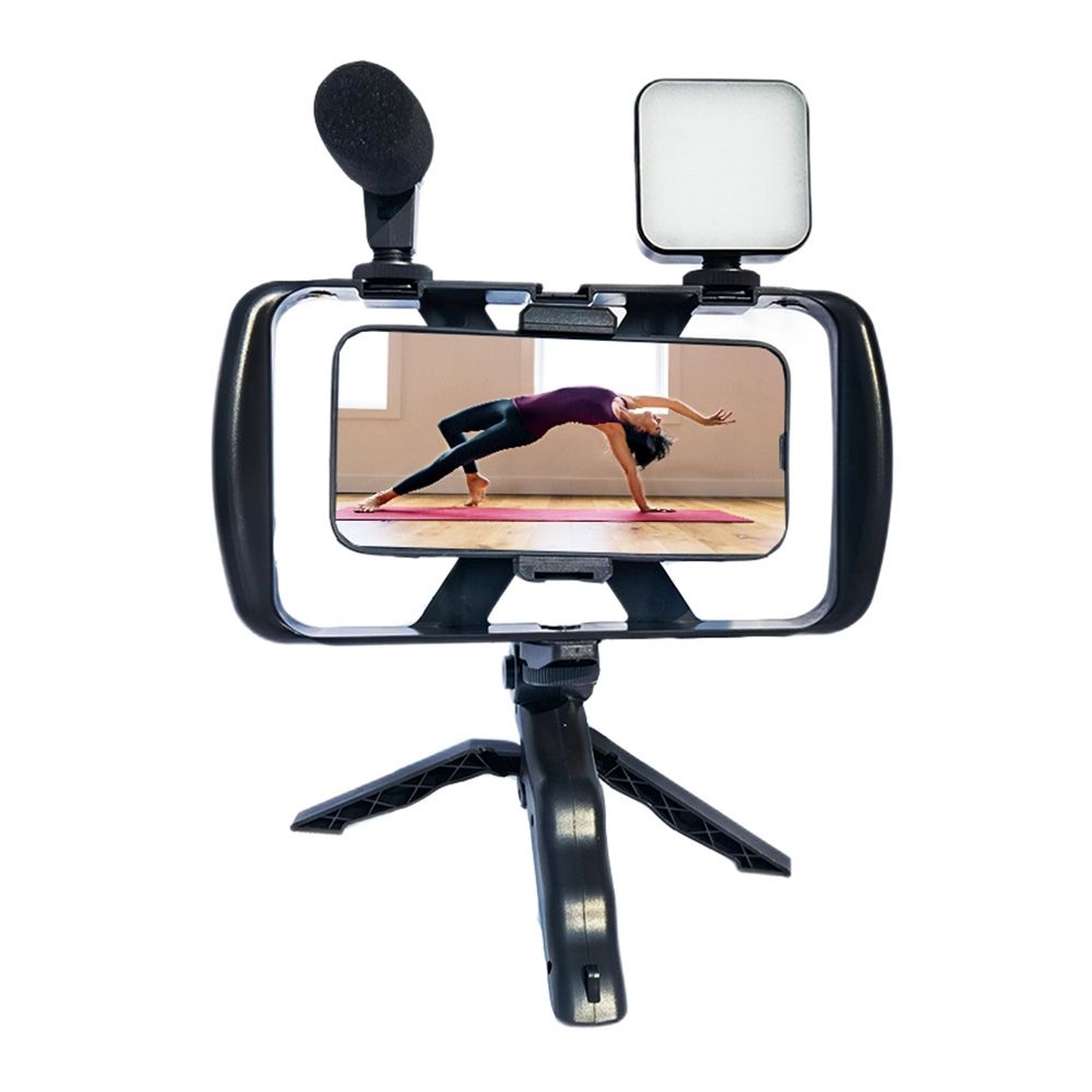 Selfiesauva langattomalla kaukosäätimellä ja kolmijalkalla LED-valolla / mikrofonilla suoraa lähetystä varten TL-49T musta