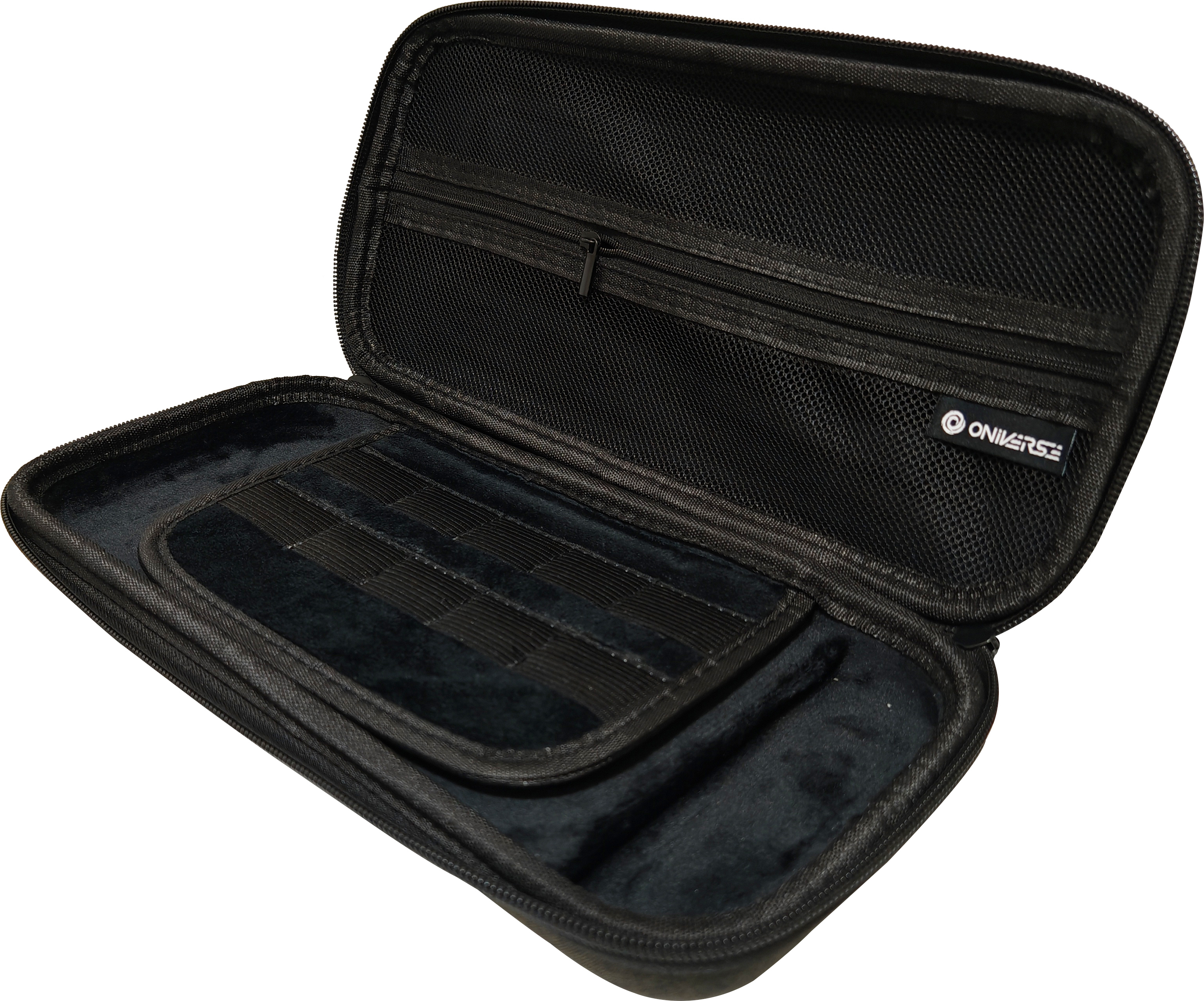 - Carrying case: Protects against shocks, mesh pocket, 10 gaming slots