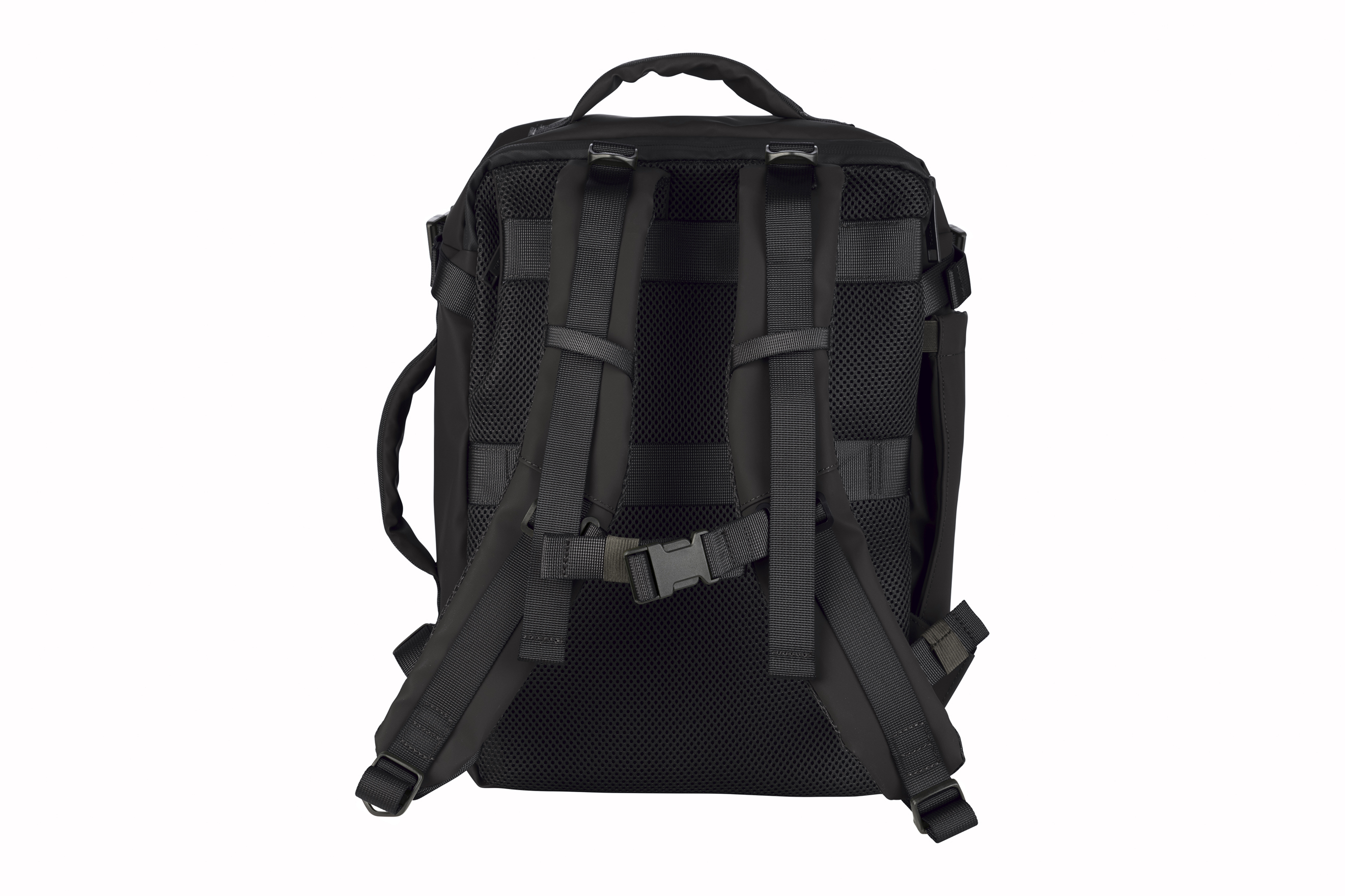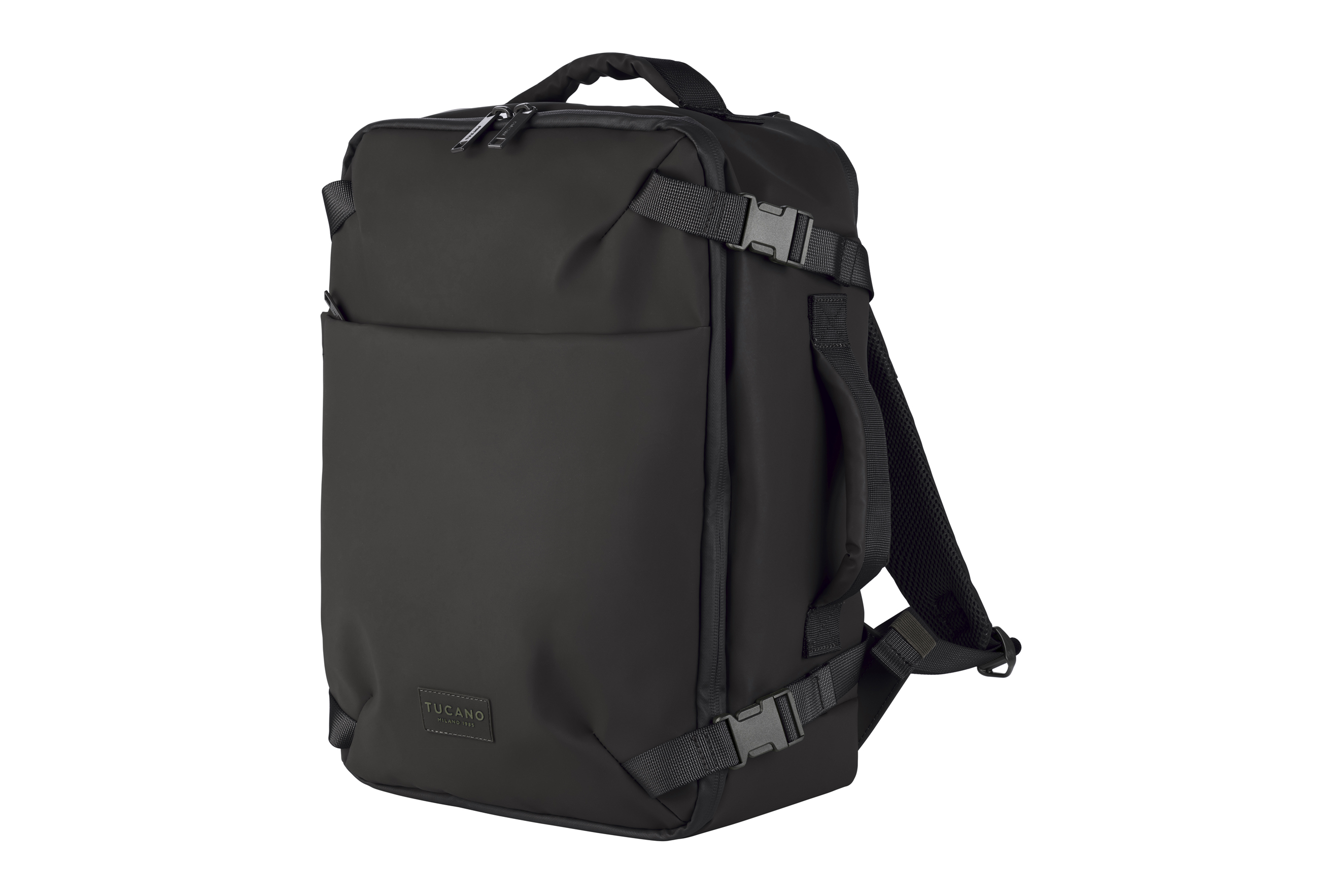 Tucano TUGO' M DRY CABIN LUGGAGE 15.6" on vedenkestävä reppu, joka sopii käsimatkatavaraksi lentokoneessa. Se on valmistettu kierrätetystä muovista tehdystä hartsipinnoitetusta kankaasta, joka kestää kosteutta ja suojaa sisältöä. Repussa on tilava pääosasto vaatteille ja tarvikkeille sekä erillinen, pehmustettu tietokonelokero, johon mahtuu jopa 15,6 tuuman tai 16 tuuman MacBook. Monipuoliset kantamisvaihtoehdot tekevät repun käytöstä joustavaa ja mukavaa.