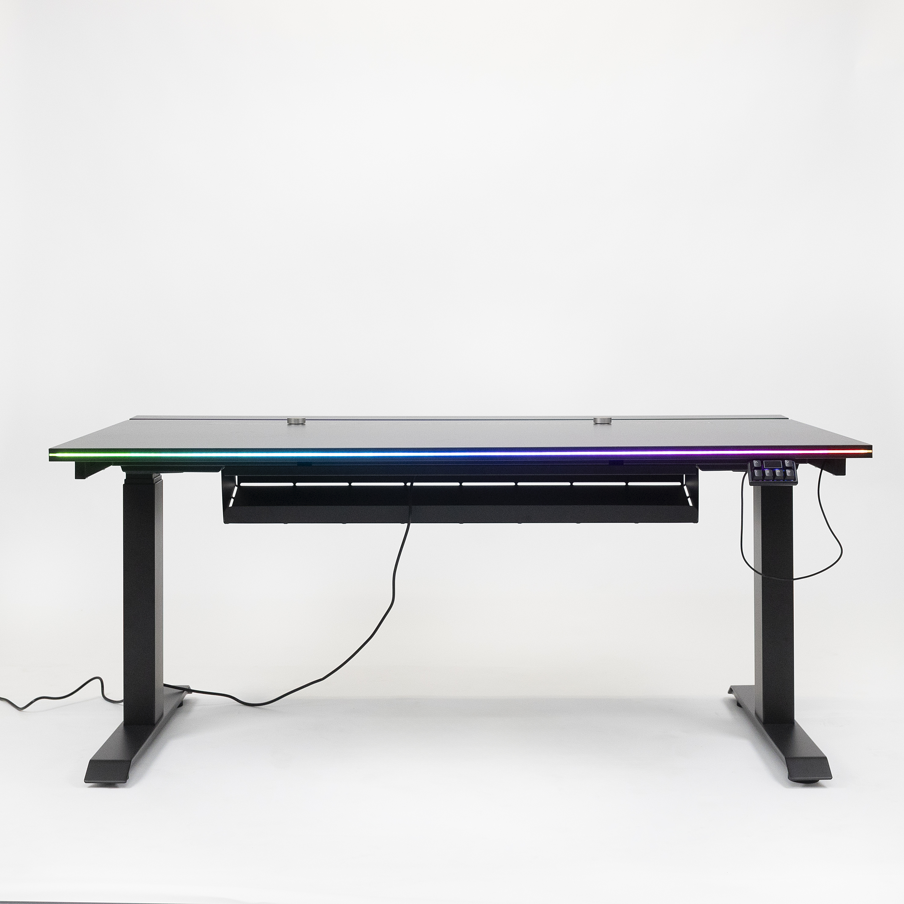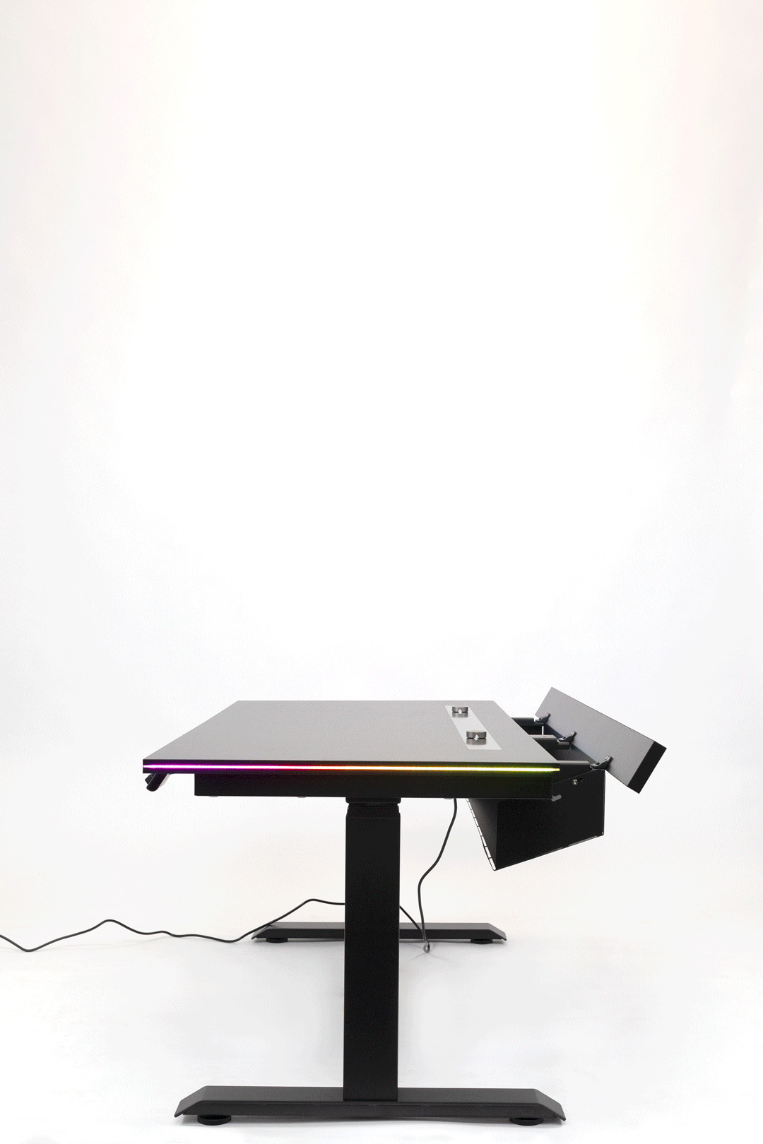 INVICTUS-S on sähkösäätöinen pelipöytä, joka yhdistää ergonomian, voiman ja viimeistellyn muotoilun. Vahva kaksoismoottorijärjestelmä takaa vakaan ja hiljaisen korkeudensäädön, ja pöytää kiertävä RGB-valonauha luo näyttävää pelihenkistä tunnelmaa.