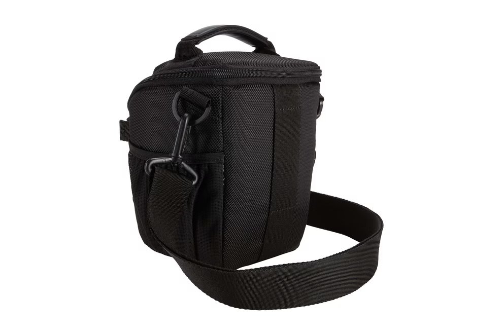 Fits a DSLR camera with kit lens Adjustable, padded divider provides custom protection Front zippered pocket keeps accessories secure yet accessible Internal zippered pocket and secure memory card pouches Mesh side pockets conveniently store a lens cap and small accessories Removable, adjustable shoulder strap, comfortable grab handle and belt loops provide multiple carry options Durable exterior constructed of 1680D polyester