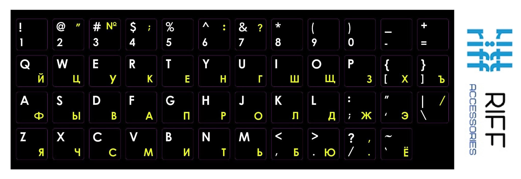 Riff Qwerty Keyboard Stickers ENG WHITE / RU YELLOW On Black Background RF-KEY-RU-BK/YE € 3.00