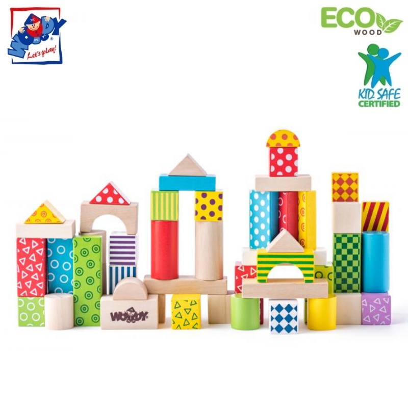 Woody 90906 Ekologiški mediniai spalvoti konstruotojo blokeliai dėžėje-rūšiuoklėje (50 vnt.) vaikams nuo 1 m WD90906 € 21.30
