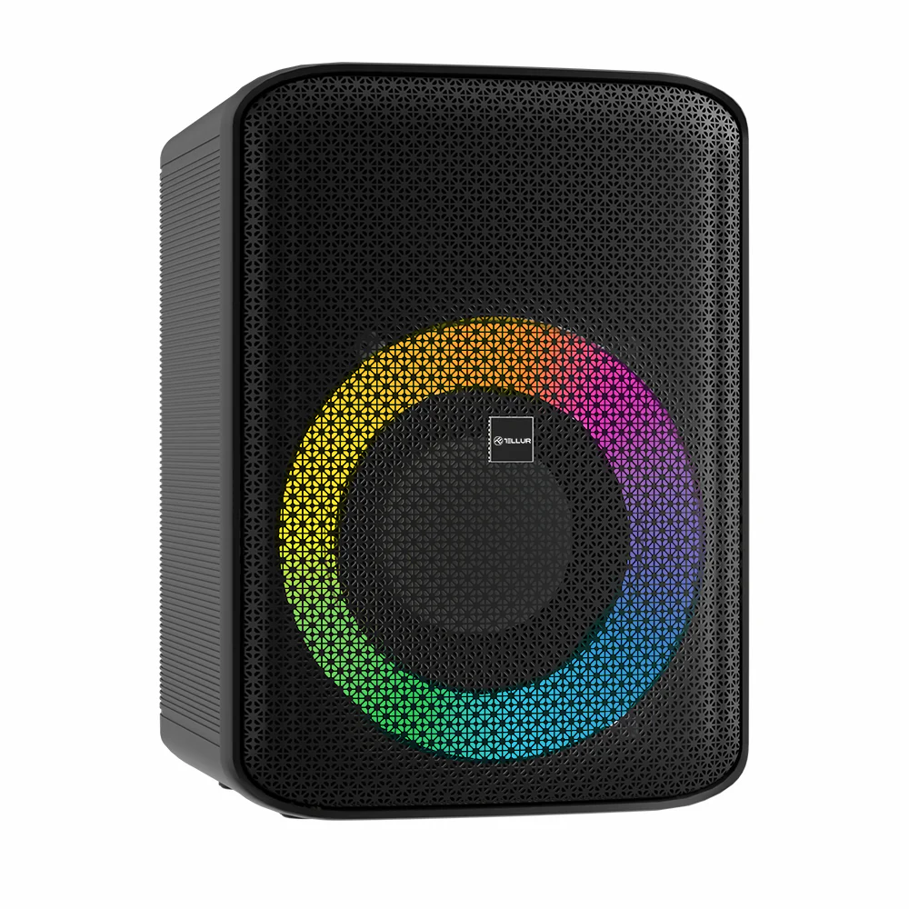 High-quality sound: Equipped with a 50-watt woofer and a 30-watt tweeter for crystal-clear audio and deep bass. Dual channel DSP: Enhances audio precision for perfectly balanced sound across all frequencies. Multiple link in TWS: Pair with another Buzz speaker for a wireless stereo experience, doubling the sound impact. Versatile connectivity: Supports USB, AUX, and Bluetooth for flexible music streaming. PowerBank function: Keep your devices charged with the built-in PowerBank feature. Dynamic RGB lighting: Add a visual element to your music with customizable RGB lights. Type Bluetooth speaker Bluetooth + AUX input + USB input + Playback time 6 h Built-in battery 4000mAh Power supply DC 5V/2A Frequency range 40Hz-20kHz Signal to noise 81dB Sound power output 1 x 50W + 1 x 30W RMS power output 80W LED illumination + Color Black Dimensions 337 x 245 x 280 mm Weight (kg) 6.8