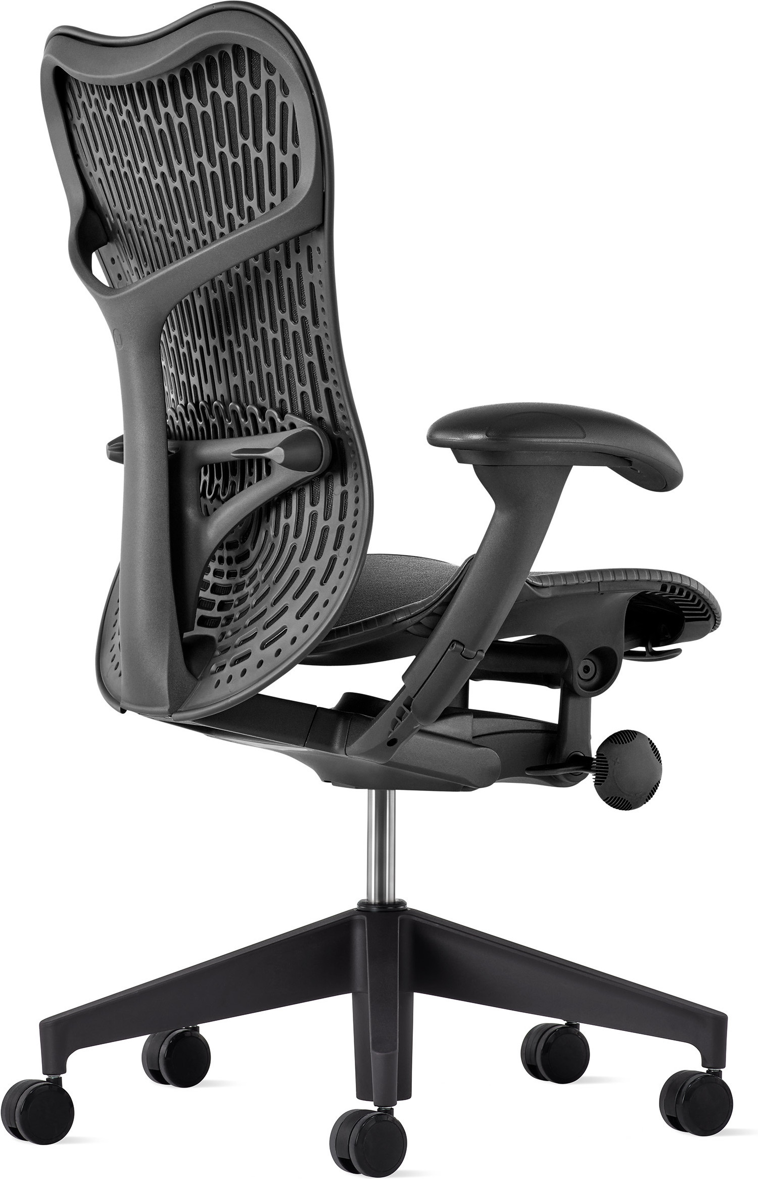 10 years after the launch of the original Mirra chair and more than 1.5 million Mirra chairs sold, Studio 7.5 together with Herman Miller decided to reflect on the design of the original Mirra. Work patterns had become more mobile and the more people are on the move the more they need a chair that supports movement. Studio 7.5 tested every part and feature of the original chair and fine-tuned the mobility to meet today's needs. Mirra2's product development was not only about improving the chair's features, but also about increasing the recyclability of the parts used in the chair. As a result, the carbon footprint was reduced by 25% and the chair is a lighter and sleeker version of the original Mirra chair.