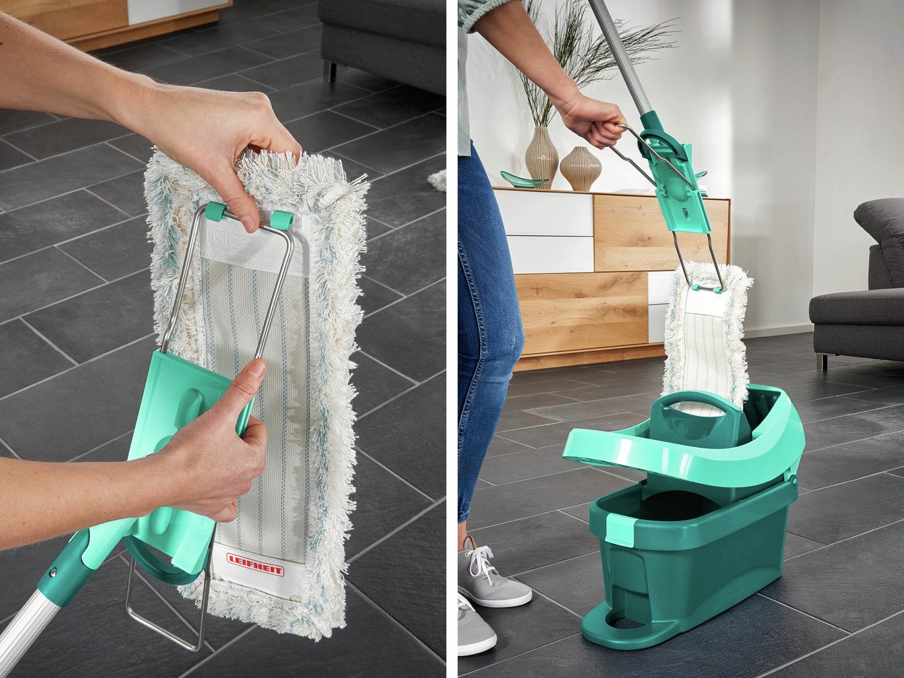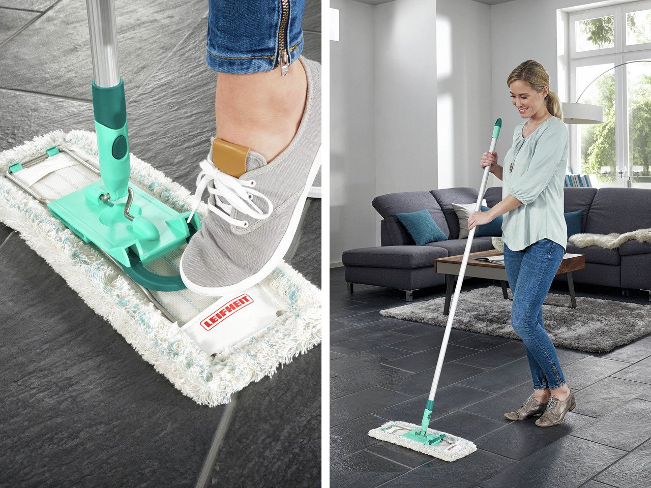 With an impressive cleaning width of 42 cm, the Profi micro duo saves you a lot of work and valuable time. The mop cover can be removed with a click of the foot while standing; Cleaning width 42 cm; 360° rotating joint for cleaning wave lines; The cover is made of microfibers and removes even stubborn dirt; The handle can be folded flat, with a hook for hanging and anti-slip protection; The mop press Profi for foot operation is available separately.