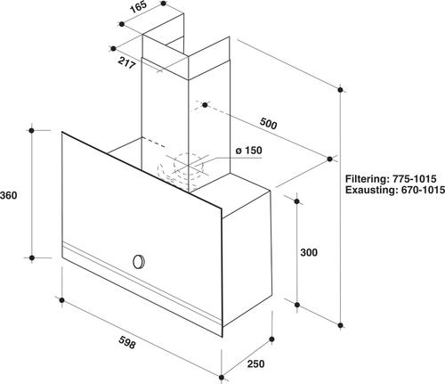 Whirlpool WHVA 62F LM K. Maximum extraction power: 485 m³/h, Type of extraction: Ducted/Recirculating, Fluid dynamic efficiency class: B. Type: Wall-mounted, Product colour: Black, Housing material: Glass, Metal. Grease filter type: Aluminium. Bulb power: 3 W, Number of bulbs: 1 bulb(s), Bulb type: LED. Energy efficiency class: A, Annual energy consumption: 41.1 kWh, Energy efficiency scale: A+++ to D