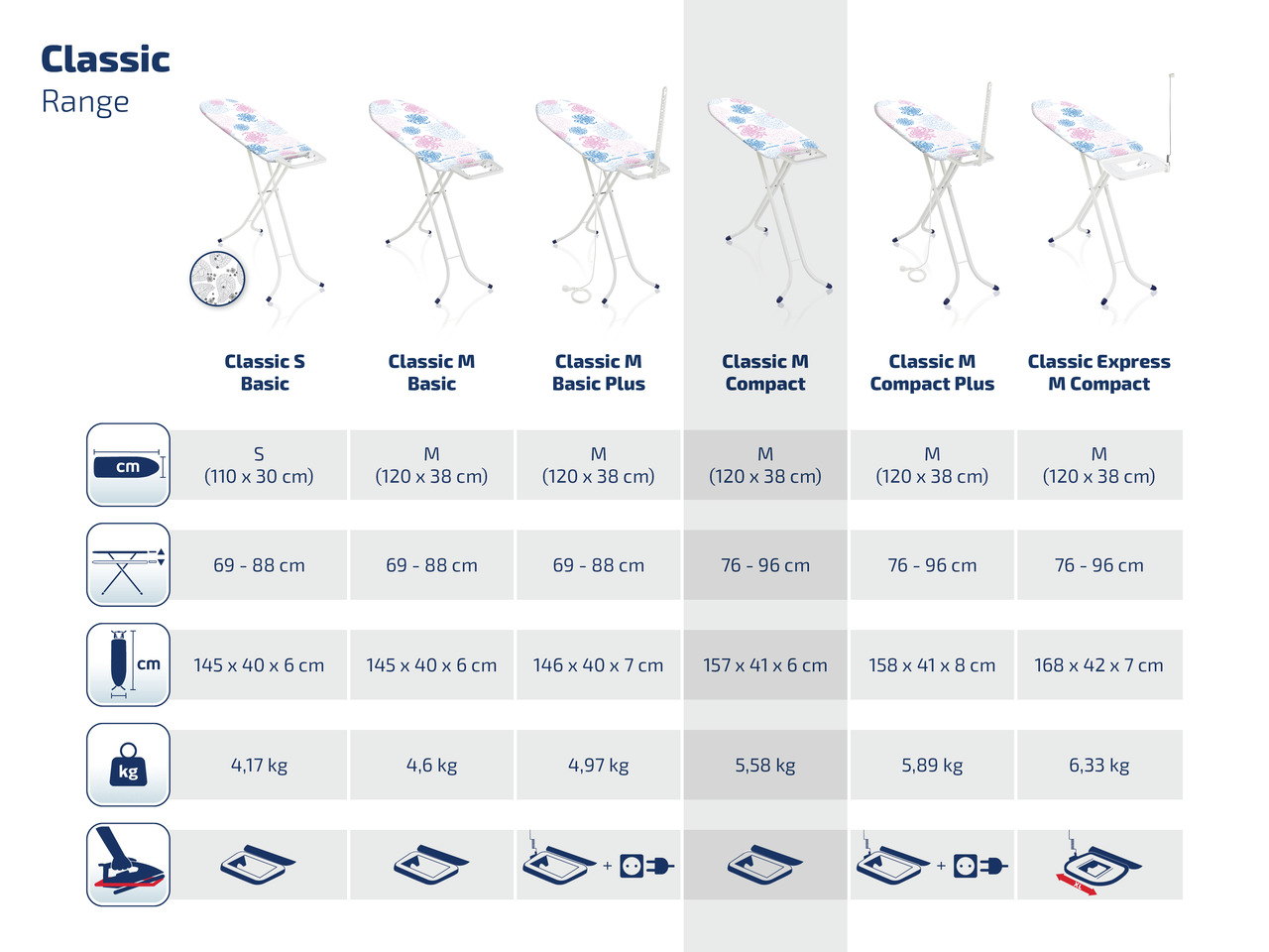 Leifheit Klasikinis M Kompaktinė lyginimo lentelė 120x38cm (1072610)