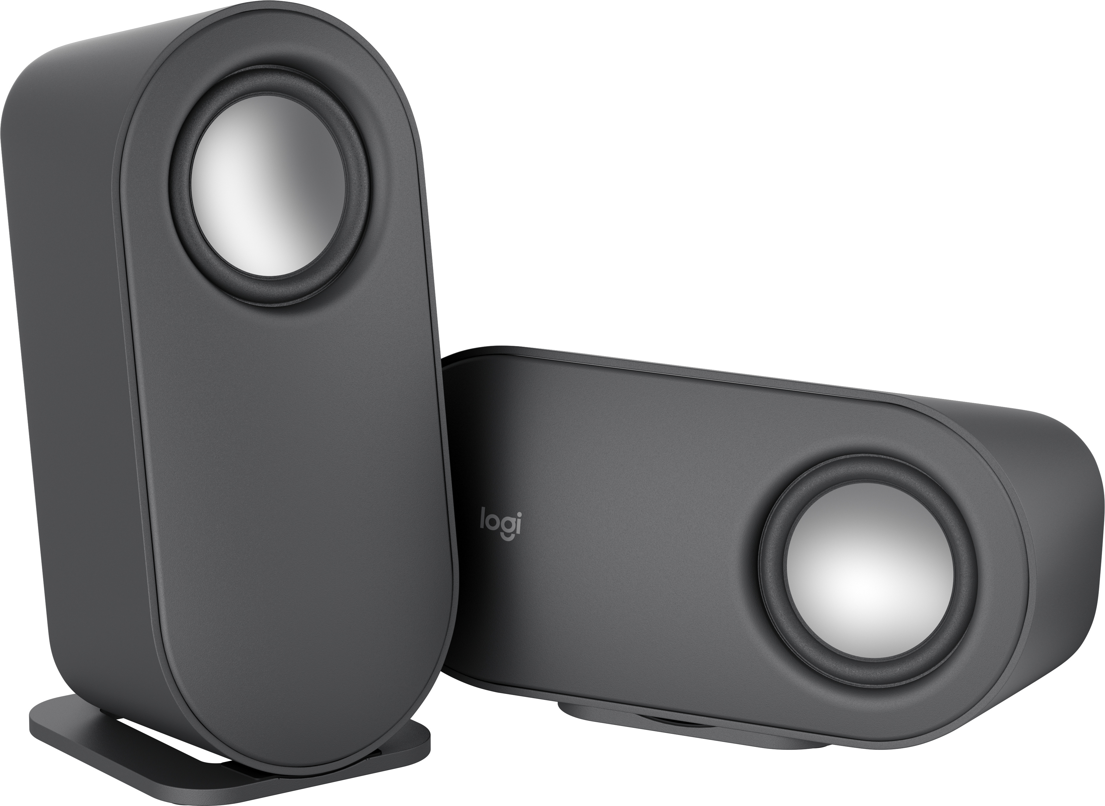 - Two-position speakers let you create a workspace that looks and sounds like you