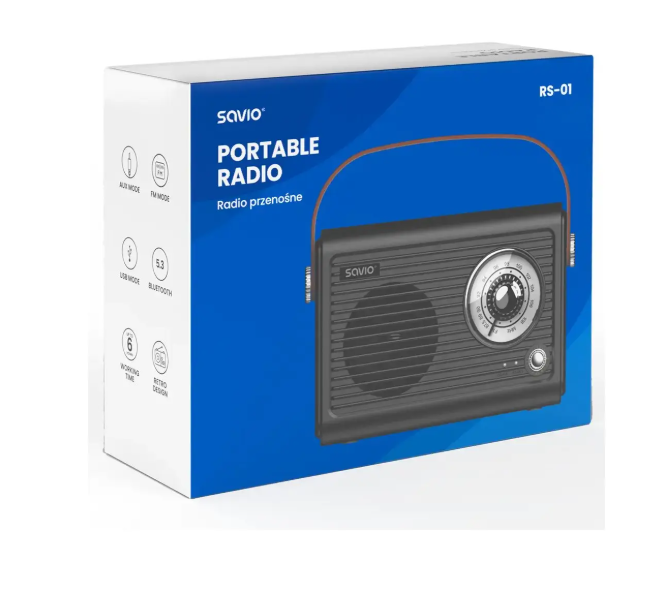 Savio RS-01 a compact and practical radio receiver, perfect for home, travel, or outdoor use. It supports FM/AM reception, comes with a built-in speaker and antenna for stable signal quality. Lightweight and easy to operate, it ensures convenient everyday use. Specifications: Type: portable radio receiver Bands: AM / FM Power supply: batteries or AC (depending on version) Speaker: built-in Antenna: telescopic Controls: mechanical (buttons/volume and frequency tuning knob)