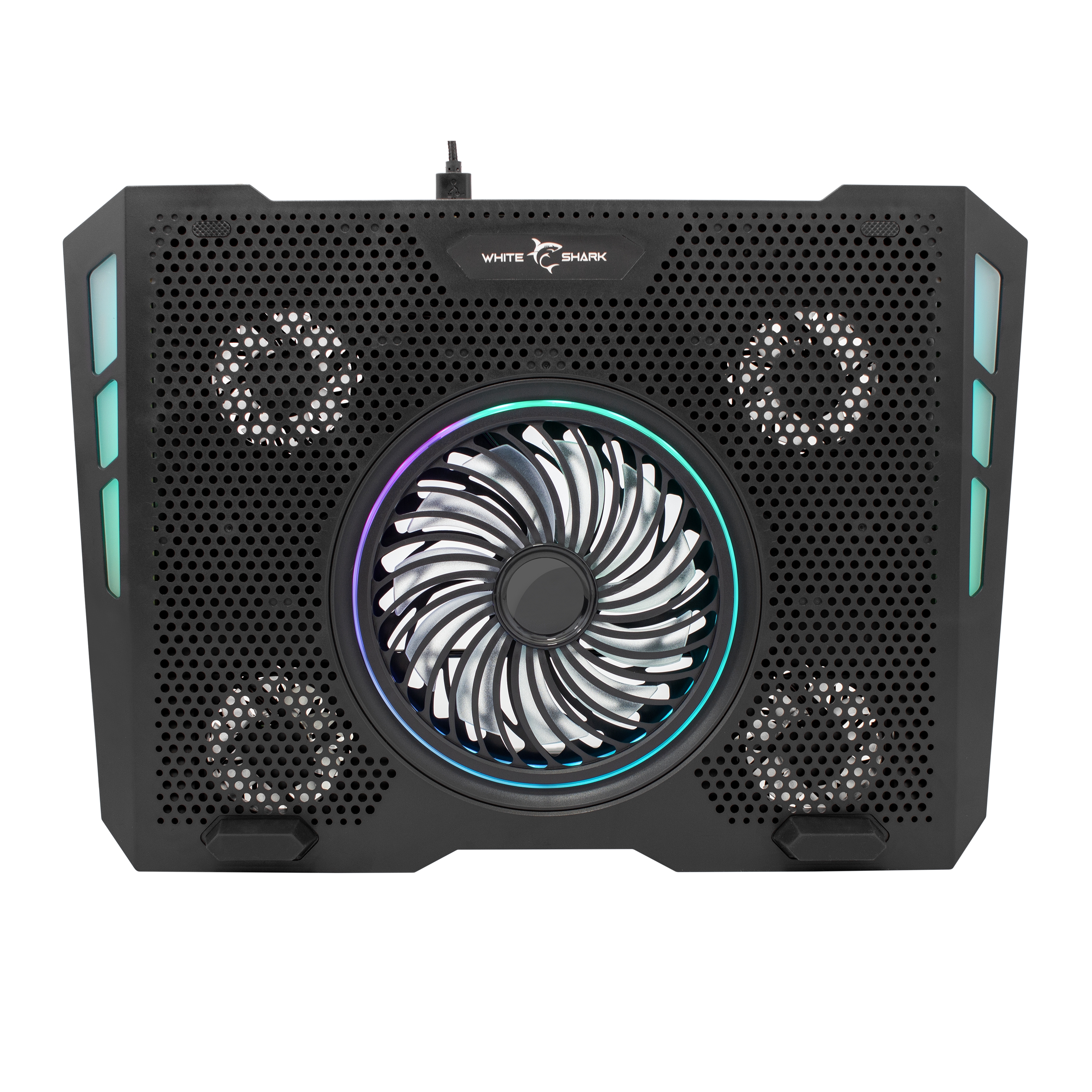 Technical data Notebook size: 17,3'' Fan speed: 1400-2500 Noise (dB): 5-15 dBA USB Hub: Yes Interface: USB 2.0 Number of USB ports: 2 Cable length (m): 0,7 Working voltage (V): 5 Air flow (CFM): 20-30 Angle adjustment: Yes, 6 positions Fan dimensions (mm): 1x140x140x20 + 4x70x70x15 Material: Aluminum - upper plate, Plastic - case Color: Black Dimensions (mm): 400x280x50 Weight (g): 880