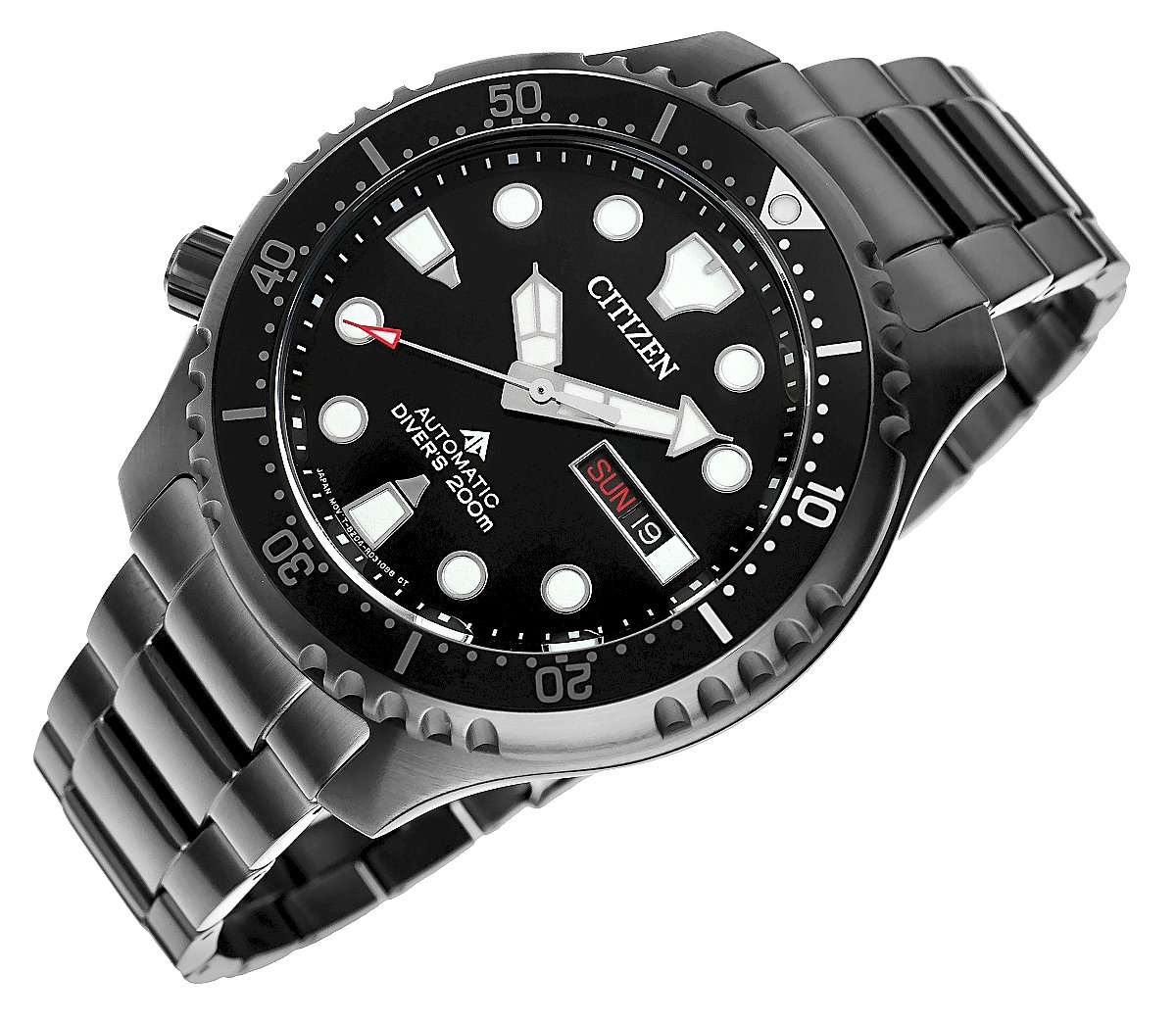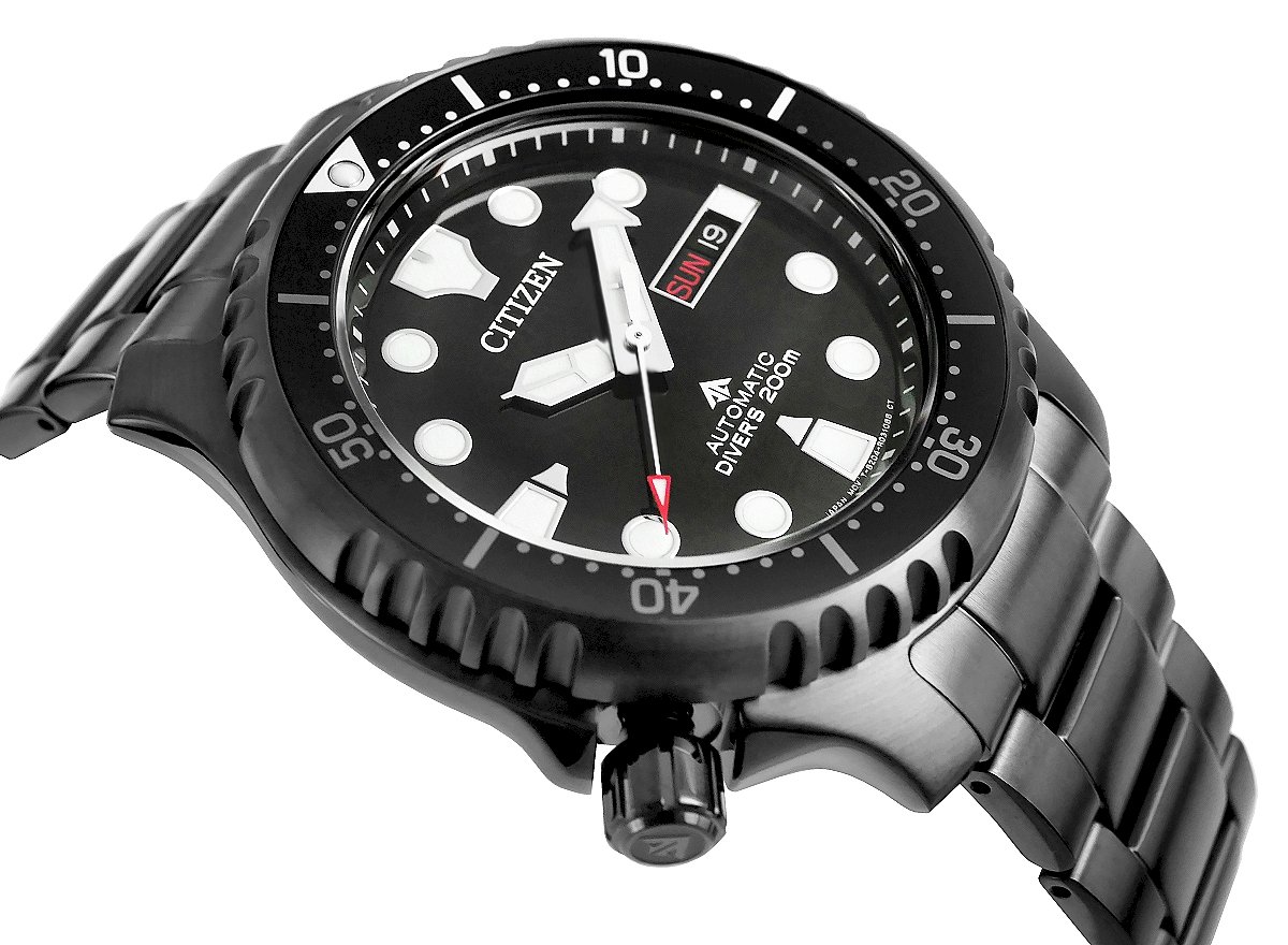 Citizen Promaster Marine NY0145‑86EE Men’s Automatic Diver Watch is a durable, stylish and highly functional automatic men’s wristwatch from the Japanese brand Citizen in the Promaster series, designed for everyday wear and active lifestyles, especially water sports, featuring a stainless steel case of about 43–44 mm, a black analog dial with prominent luminous hands and markers, and day‑and‑date display at 3 o’clock; powered by the Citizen Miyota 8204 automatic movement with around a 42‑hour power reserve, this watch requires no battery and self‑winds with wrist movement, plus it has a unidirectional rotating bezel, screw‑down crown and case back, scratch‑resistant sapphire crystal, and water resistance up to 200 m (20 ATM) meeting ISO 6425 diving standards, making it not just a stylish accessory but a reliable tool for active life and diving; paired with a stainless steel bracelet with secure folding clasp, this sporty‑elegant timepiece suits both casual and business attire and makes the NY0145‑86EE an excellent gift or everyday choice.