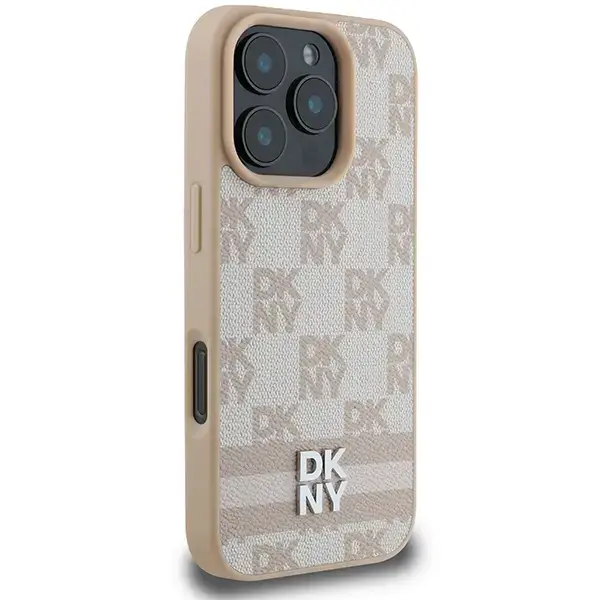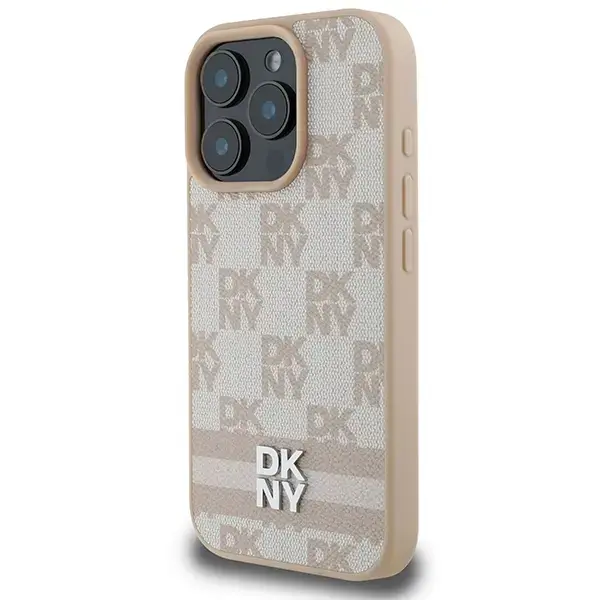 DKNY DKHCP16LPCPTSSP iPhone 16 Pro 6,3" rožinė|rožinė kietas dėklas su šachmatų raštu ir dryžiais