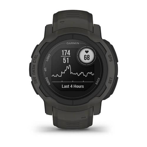 Use the Garmin Connect app to track your menstrual cycle or pregnancy. Log symptoms, get exercise and nutrition education, and more.Garmin Instinct 2. Display diagonal: 2.29 cm (0.9"), Display technology: MIP, Display resolution: 176 x 176 pixels. GPS (satellite). Weight: 52 g. Band material: Silicone, Band colour: Graphite, Band size: One Size