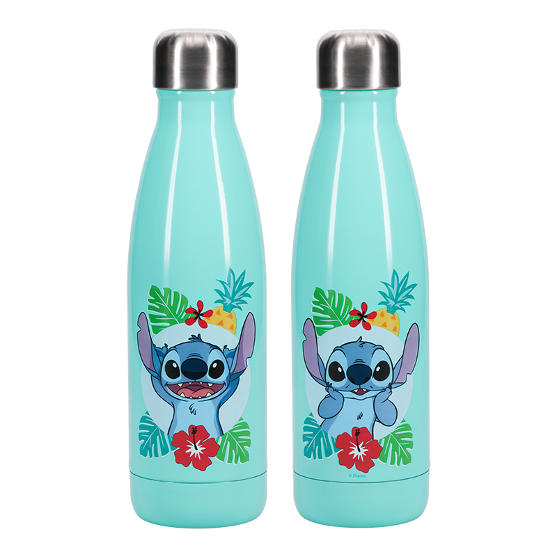 Stay refreshed in intergalactic style with this Stitch Metal Water Bottle. The 460ml capacity stainless steel water bottle features a tropical themed design with the adorable blue alien, Stitch, posing on each side. The bottle comes with a metal screw-top lid to keep your drink fresh and prevent spills throughout the day. It can be used for hot or cold liquids. The Stitch Metal Water Bottle is perfect to use when travelling to work or school. Fans of Disney and Lilo and Stitch will love using it every day. Not suitable for dishwasher or microwave use. Tropical Stitch themed design 460ml capacity Not suitable for dishwasher or microwave use Officially licensed Disney product