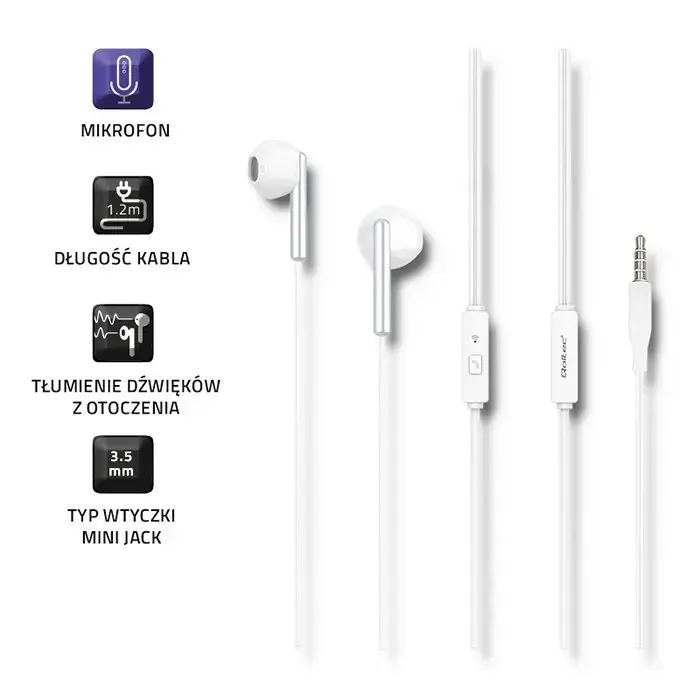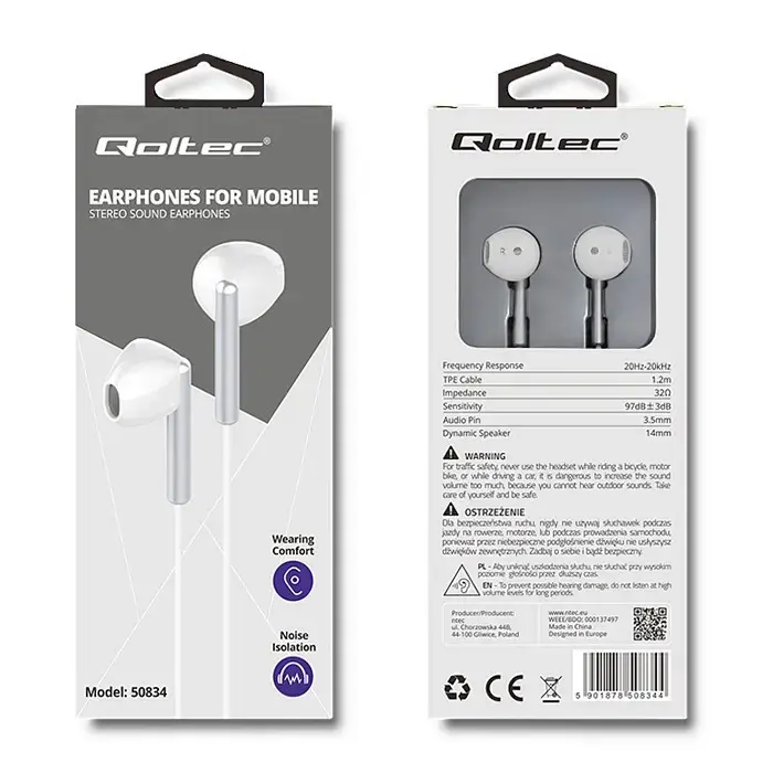 Qoltec Ausinės į ausį + mikrofonas, baltos (50834)