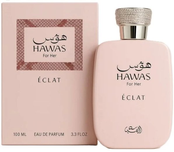 Fragrance NotesRasasi Hawas Éclat Eau de Parfum (W) yra motiški, vaisių ir gėlių aromatas su šiltu amber baziniu tonu. Pradinės natos – litsis, kriaušė, bergamotė ir pistacija, kurios suteikia sultingą, saldžiai šviežią ir šiek tiek riešutų aromatą. Viršutinės natos – rožė ir smilkalai, kurie sukuria romantikos, šiek tiek rūkančio ir elegantiško gėlių aromato charakterį. Bazinės natos atskleidžia vanilę, amber, muskuso ir medienos akordus, suteikdami šiltą, kreminį ir ilgai išliekantį aromatą.