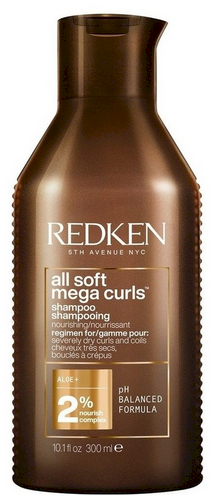 Šis optimizuota, be sulfatų formulė švelniai valo, suteikdama plaukams ir rievėms reikalingą intensyvų maistinimą ir drėgmę. „All Soft Mega Curls“ šampūnas suteikia plaukams ir rievėms didesnį apibrėžtumą, hidrataciją, taip pat momentinį ir ilgalaikį glotnumą iki 72 valandų. Sudėtyje yra 2 % „Nourish Complex“ – alavijų ir glicerino ekstrakto derinys, kuris gerina ir sulaiko drėgmės lygį įvairiems plaukų tipams ir suteikia plaukams drėgmės. Šis šampūnas yra be sulfatų, kad užtikrintų švelnų valymą, ir be silikonų – natūraliai. „All Soft Mega Curls“ linija yra veganiška, be jokių gyvūninės kilmės ingredientų. „Nourish Complex“: sujungti ingredientai kartu veikia, kad padidintų plaukų drėgmę ir suvaldytų jį. Remiantis vartotojų testais, naudojant visą „All Soft Mega Curl“ sistemą, N=75