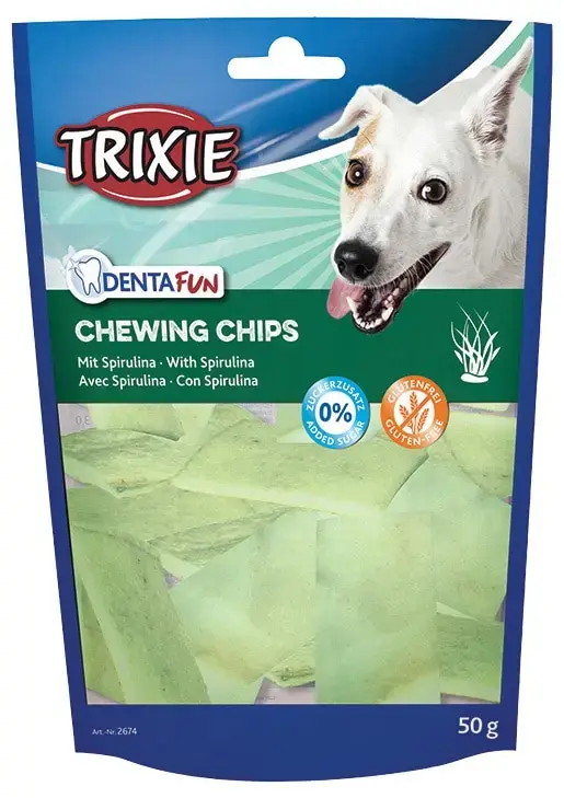 Dog Treats - Trixie Chewing Chips with Spirulina Algae 50g.Dog Treats - rawhide chips with spirulina algae for adult dogs.Suitable for long chewing as they are made from thick and durable rawhide;