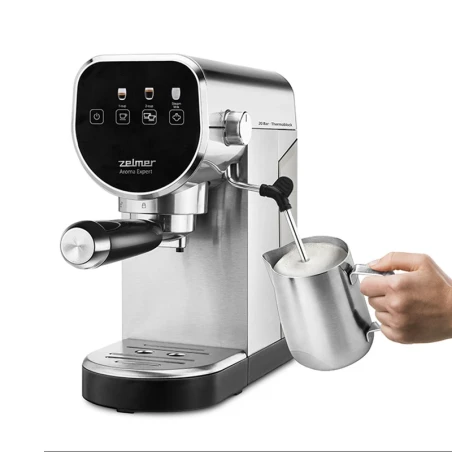 The Zelmer ZCM7300 Aroma Expert is a compact and stylish portafilter coffee maker that allows you to prepare aromatic espresso and coffee of the volume of your choice. With a pressure of 20 bar, a milk frothing nozzle and a touch control panel, brewing coffee becomes quick and convenient.