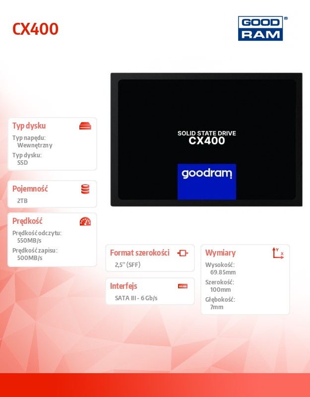 GOODRAM Disk SSD CX400-G2 2TB SATA3 2,5 7mm (SSDPR-CX400-02T-G2)