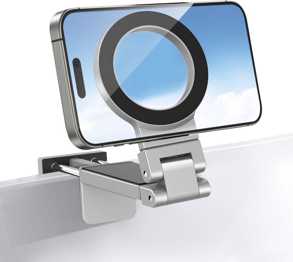 FoneKit MagSafe compatible Desk Phone Holder is a versatile stand that can be used as a free-standing stand or securely attached to the edge of a desk. Its powerful magnet allows it to be attached to all MagSafe-equipped devices and magnetic cases, and a clip with a strong spring holds the stand securely to the edge of the desk. When assembled, the holder is very compact and easy to take with you on your travels and use on the plane or train.