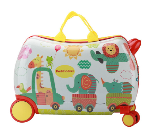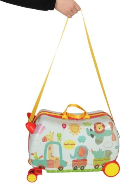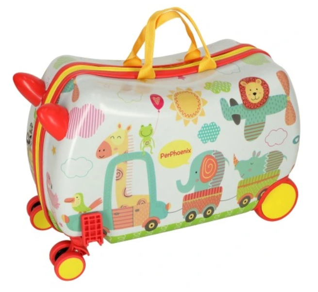 Travel in style!Traveling with kids can be a hassle, but we have an easy way! And a very stylish one at that!This adorable suitcase on a trolley with a picture of delicious ice cream will win the hearts of many. It will be loved by both children and adults!This product is unique! Compared to other travel bags and suitcases, this children's suitcase has an additional function – it can be used as a seat or even as a children's attraction!When your little one gets tired from traveling, they can comfortably sit on the suitcase and put their feet on the footrests provided. Plus, if you have to travel some distance with your tired baby, you can pull the entire suitcase with your child using the strap.But besides the beautiful graphics and the seating function, the suitcase has other advantages! First of all, it is very easy to pack – two large compartments (including one with a zipper) have enough space for all the necessary things: clothes, toys, and everything else that your baby might need during the trip. Meanwhile, a small zippered pocket will be able to accommodate all the little things that your child might want to pack.Secondly, the suitcase can be easily carried by holding the handles or by slung over your shoulder. However, the most child-friendly option will be to be able to pull it.If a child has their own suitcase, they will learn to take care of their belongings and keep track of them, and it will also encourage them to pack their own things! Main product features: Interesting ice cream pattern Special design so that the baby can sit on the suitcase Four wheels Two-way zipper closure Inner fabric in gray Practical handles for carrying Shoulder strap for carrying the suitcase over the shoulder Two large compartments (one with zipper, the other with straps) Small pocket with zipper Footrests Handles to hold on to when carrying a suitcase Maximum load capacity: 20 kg Material: plastic Dimensions: Full suitcase: 45 cm x 31.5 cm x 22 cm Smallest wheel (diameter): 5 cm (outer diameter) Largest wheel (diameter): 9 cm Footrest: 5 cm x 3 cm Packaging size: 48 cm x 32 cm x 24.5 cm