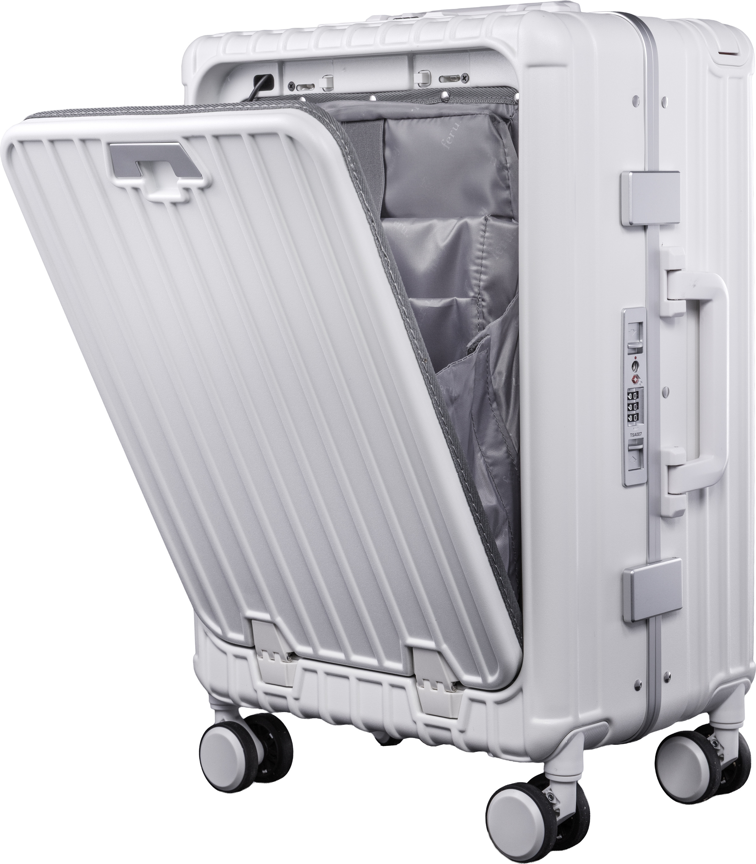 Baltas polikarbonato korpusas sukuria šviesią ir aiškią išvaizdą bei gerai atspindi kelionių apkrovą. Priekyje esanti atskira, lengvai atidaroma saugojimo erdvė puikiai tinka nešiojamam kompiuteriui ar kitiems svarbiems daiktams laikyti. Galiniame skydelyje yra patogus, paslėptas sulankstomas puodelių laikiklis – nedidelė, bet patogi papildoma funkcija, kuri išlaiko rankas laisvas ir gaiviuosius gėrimus kartu kelionėje.