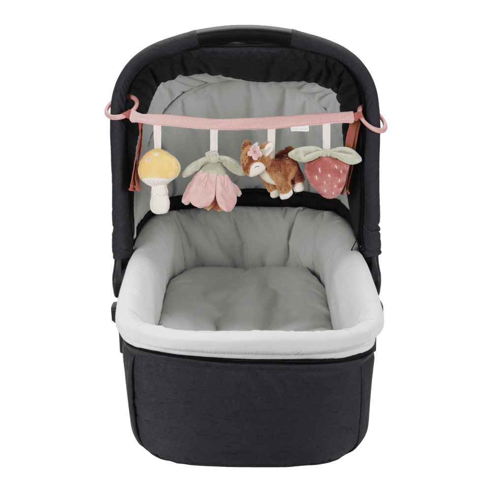 Tutustu Fairy Gardenin neljään söpöön pikku leluun. Ihastuttavat peura, mansikka, sieni ja kaunis kukka viihdyttävät kävelysi aikana. Anna lapsellesi aistielämys tämän värikkään vaunuhelistimen avulla, joka kannustaa kehittämään käden ja silmän koordinaatiota liikkeellä ollessasi. Vaunuhelistin on helppo kiinnittää turvaistuimista rattaisiin. Tuotteessa käytetty kierrätettyä GRS materiaalia.