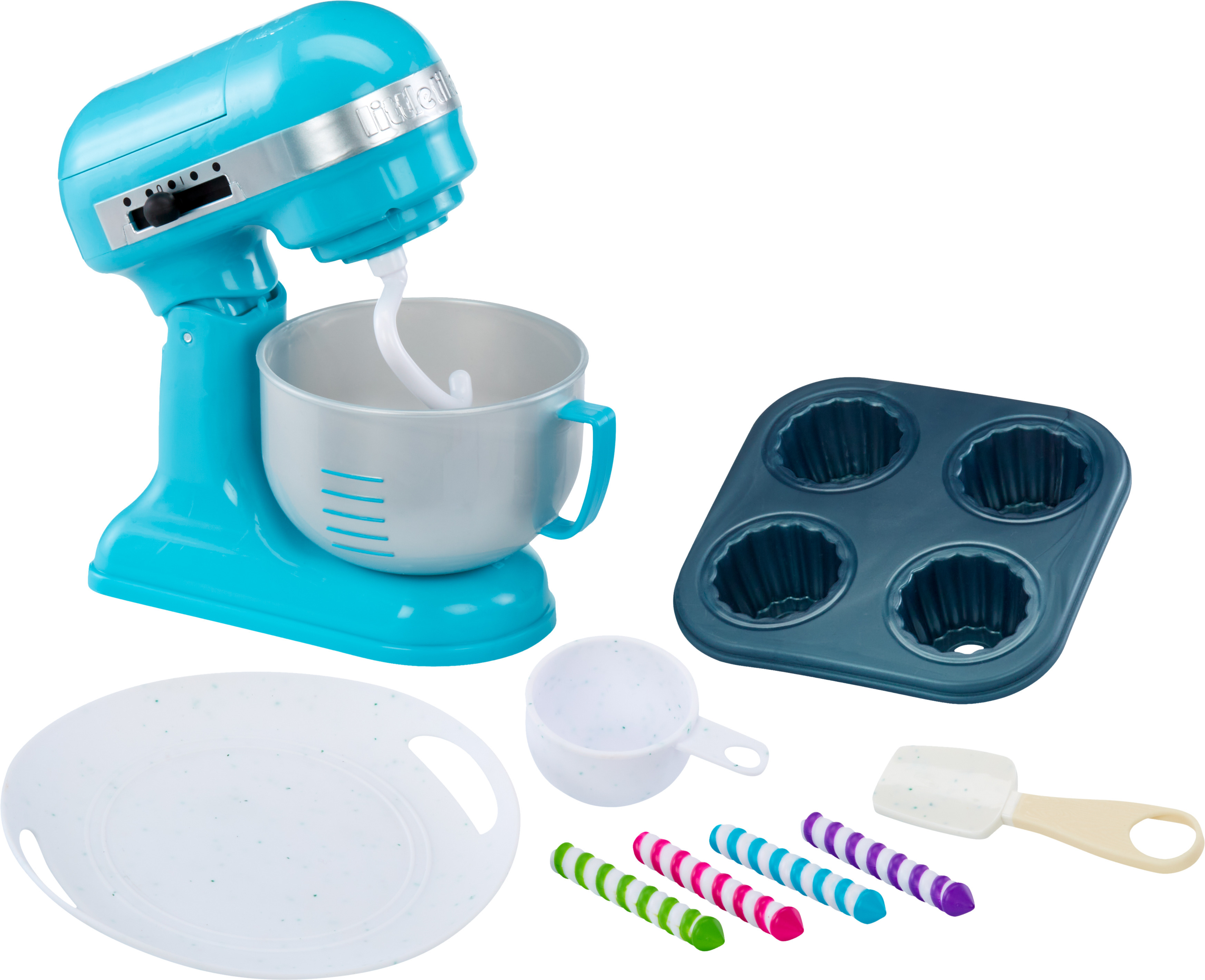 Includes more than 20 cooking utensils, reusable moldable sand, battery-powered mixer, and recipe card with visual instructions.