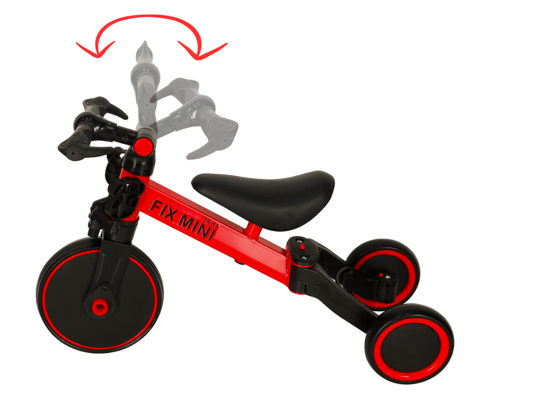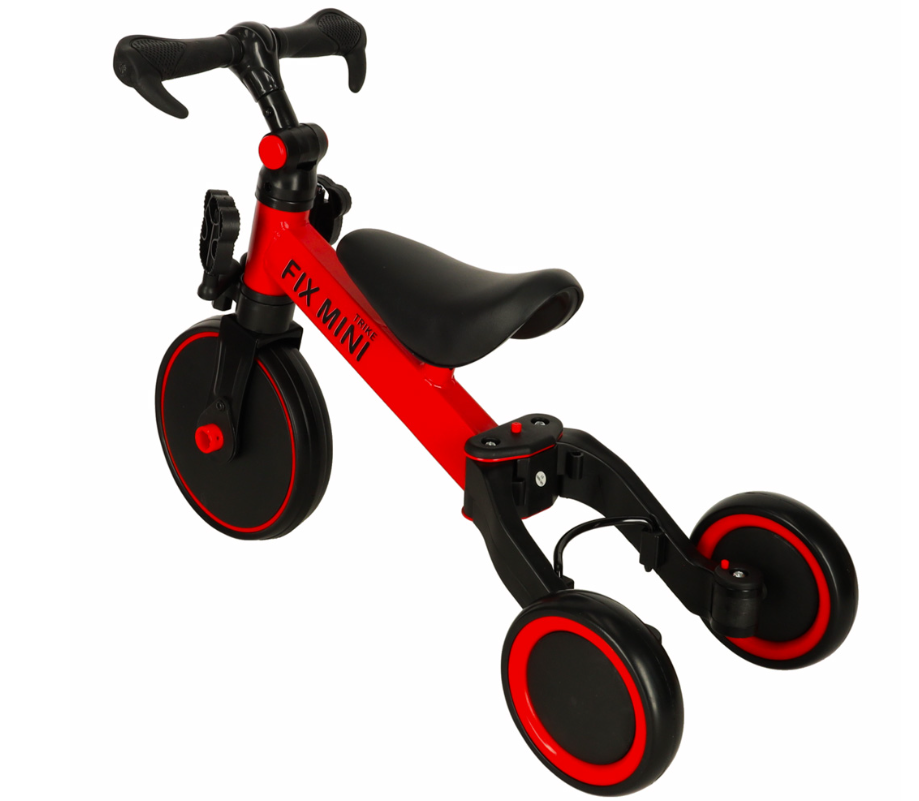 Speed, excitement, and the wind in your child’s hair (through the helmet holes, of course)! The Trike Fix Mini 3-in-1 Tricycle delivers it all. This multifunctional tricycle transforms into three different riding modes: Cross-Country Tricycle (3 wheels, no pedals) – Ideal for beginners learning to steer and balance. Standard Tricycle (with pedals on the front wheel) – Encourages independence and physical activity. Balance Bike Mode (rear wheels folded together) – Prepares your child for a two-wheeled bicycle by developing balance skills. Adjustable handlebar height from 41 cm to 50 cm and saddle height from 31 cm to 38 cm, ensuring long-term usability and comfort. Perfect for children aged 18 months to 4 years (max. load: 30 kg). This tricycle promotes motor development, balance, coordination, and physical activity in a fun and engaging way. Durable materials ensure it stands up to every adventure, whether indoors or outdoors. Specifications: Color: Red Maximum Load: 30 kg Recommended Age: 1.5 to 4 years Frame Material: Aluminum Wheels: Plastic + Foam Tires Handlebars: Rubber Grips Dimensions: Bicycle: 67 × 47 × 51 cm Frame Length: 31 cm Handlebar Height: 41–50 cm Handlebar Width: 32 cm Saddle Height: 31–38 cm Saddle Size: 24 × 13 cm Frame Length (Seat to Handlebar): 18 cm Front Wheel Diameter: 22 cm Rear Wheel Diameter: 15 cm Package Size: 61 × 17 × 21 cm Packaged in a sturdy cardboard box.