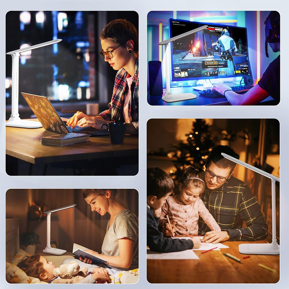 Power 5W 5 color temperature : 2800-3200K, 3800-4200K, 4000-4500K 4800- 5300K, 6000-6500K Brightness adjustable from 15% to 100% Arm adjustable USB-C power connector (power adapter included) 30/60 min timer