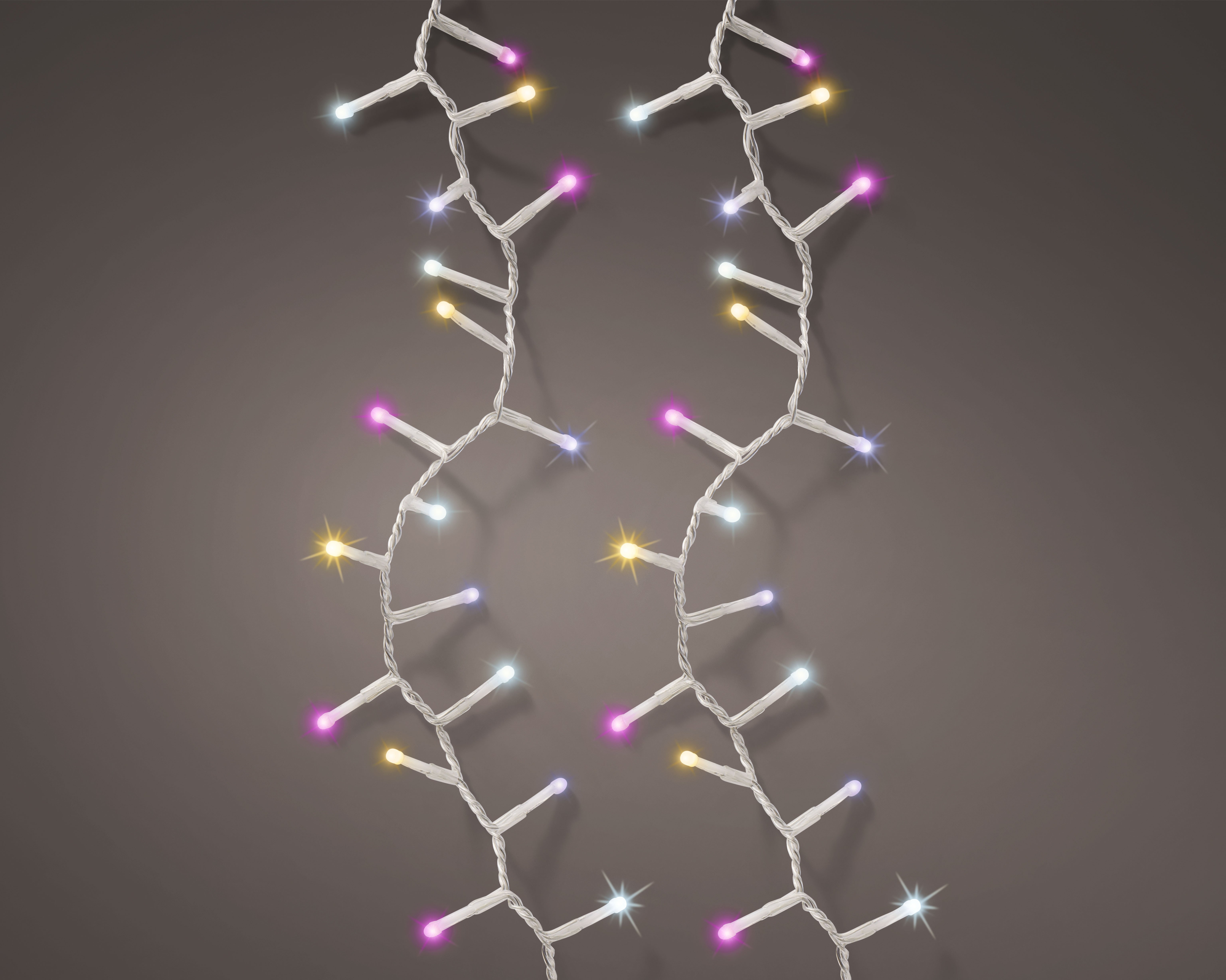 Tuo puutarhaan, parvekkeelle tai sisääntuloon satumaista tunnelmaa Lumineo Compact twinkle -valosarjalla. Tiheästi sijoitetut, moniväriset LED-valot – lämpimän valkoinen, violetti, pinkki ja kylmä valkoinen – luovat vaikuttavan valomeren, joka säihkyy kahdeksalla eri tuike-efektillä – rauhallisesta välkkeestä eloisaan kimallukseen. Kompaktin rakenteen ansiosta valot sopivat erinomaisesti tiheään koristeluun, esimerkiksi pensaiden, aitojen tai kuusen ympärille.