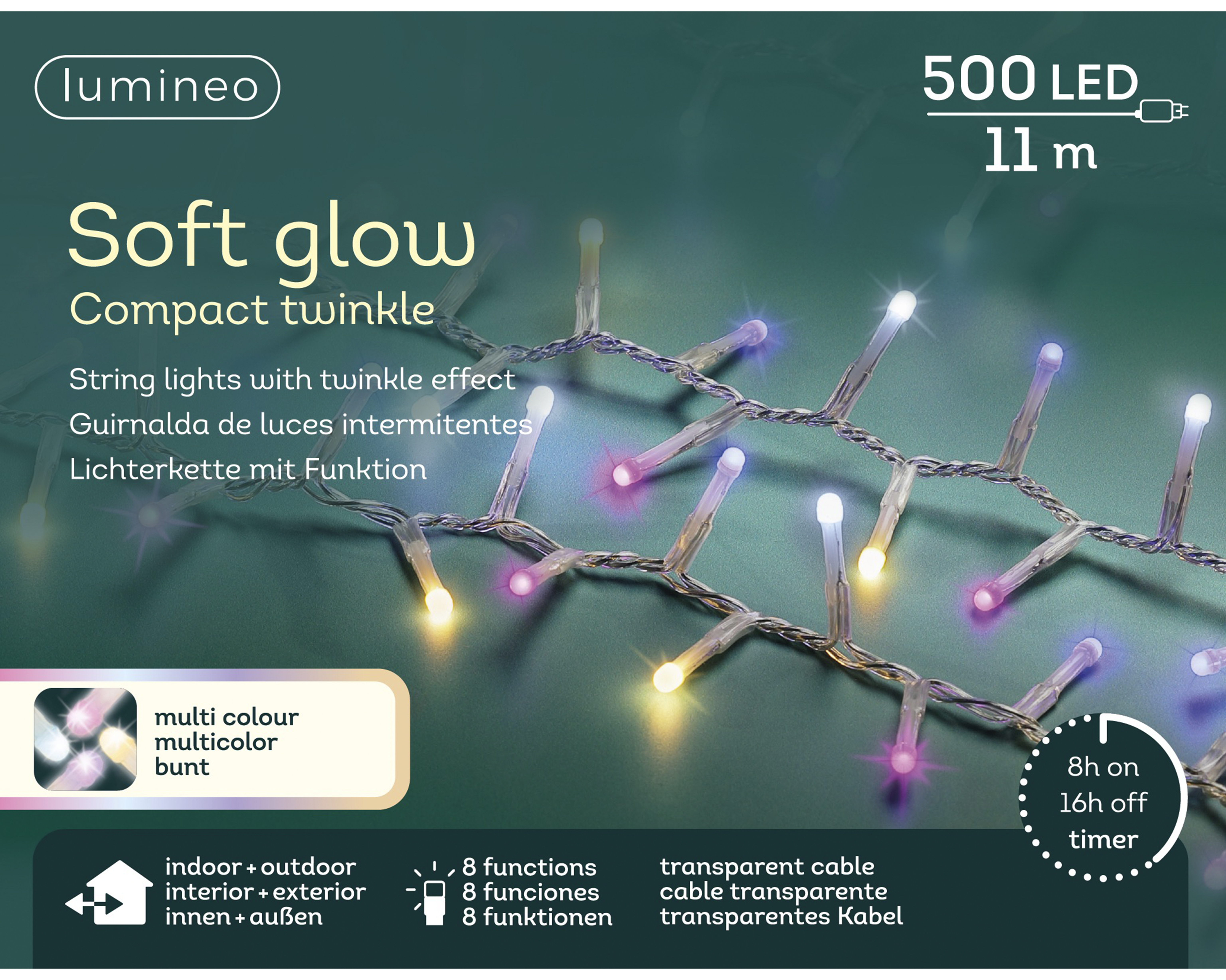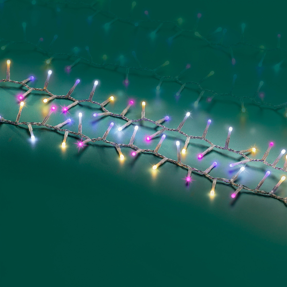 LUMINEO Mīksts mirdzums, daudzkrāsains rotājumu gaismasvads āra lietošanai, 11 metri (495670)
