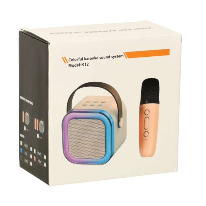 Rozā karaoke komplekts, kas sastāv no skaļruņa un mikrofona, ir lielisks veids, kā bērni var attīstīt savas muzikālās prasmes. Skaļrunis darbojas ar akumulatoru un tam ir RGB apgaismojums ar pieciem režīmiem, kas padara lietošanu vēl aizraujošāku. Mikrofons arī darbojas ar akumulatoru, nodrošinot ērtību un mobilitāti uzstāšanās laikā. Ierīcēm ir pogas, kas ļauj ērti kontrolēt funkcijas, piemēram, skaļuma regulēšanu, sešu balsu efektu izvēli un dziesmu maiņu. Skaļrunim ir austiņu ieeja un atmiņas kartes slots. Komplektā iekļauts USB kabelis ierīču uzlādei. Tehniskie parametri: Krāsa: rozā Materiāls: plastmasa Skaļruņa jauda: 6 W Darbības spriegums: 3,7 V Skaļruņa darbības laiks: 2,5 stundas Mikrofona darbības laiks: 3,5–4 stundas Skaļruņa barošana: uzlādējams akumulators Mikrofona barošana: uzlādējams akumulators Apgaismojuma režīmi: 5 Balss maiņas režīmi: 6 Skaļruņa izmēri: 8,8 × 7 × 8,8 cm Mikrofona garums: 13,5 cm Iepakojuma izmēri: 14,5 × 14 × 7,7 cm Komplektā ietilpst: Skaļrunis Mikrofons USB kabelis