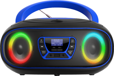The Denver TDB-212 DAB+ boombox combines a classic look with modern technology. In addition to DAB+ and FM radio, it plays music via Bluetooth, USB, CD or AUX connection - flexibly according to your preferences. An LCD display shows stations or track information. Two speakers with coloured lighting and 1.8 W RMS each ensure perfect sound. Ideal for the children's room, kitchen or when travelling - the boombox delivers style and sound in one.Features DAB+ & FM radio for digital and analogue receptionBluetooth function for wireless music streamingUSB connection and CD player for MP3 playbackAUX and headphone connection for maximum flexibility. and headphone connection for maximum flexibilityLighting around the speakers for a cool lookTechnical data Bluetooth connectionsDAB/DAB+ Display EAN 5706751079979 Manufacturer Denver Jack connection 3,5 mm Headphone connection Scope of delivery Boombox, power cable, operating instructions Dimensions (W x H x D) 211 x 132 x 226 mmProduct type music systems compact Product colour blue Radio Other CD player USB interface