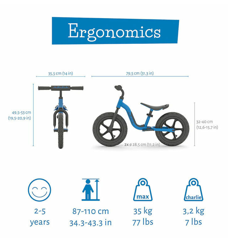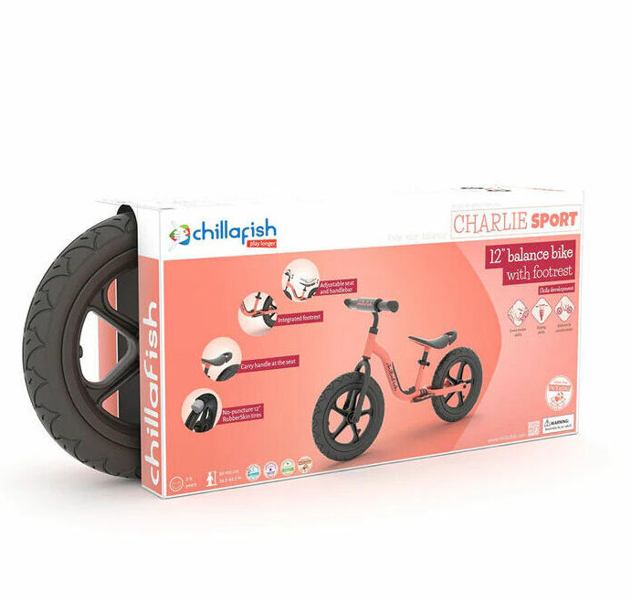 CHILLAFISH CPCH06FLA ir Charlie Sport līdzsvara ritenis, kas paredzēts bērniem vecumā no 2 līdz 5 gadiem (augums 87–110 cm). Tas apvieno vieglumu, drošību un sportisku dizainu, veicinot līdzsvara un koordinācijas attīstību. Galvenās īpašības: Viegls metāla rāmis: Tikai 3 kg svars, kas atvieglo vadīšanu bērniem un pārnēsāšanu vecākiem. Regulējamas detaļas: Sēdekļa augstums pielāgojams no 32 līdz 40 cm, stūres — no 49,5 līdz 53 cm, augot kopā ar bērnu. Droši, nepiepūšami riteņi: 12 collu RubberSkin riteņi nodrošina vienmērīgu braucienu bez nepieciešamības tos pumpēt. Ergonomisks sēdeklis: Komfortabls arī ilgākās pastaigās. Iebūvēts rokturis pārnēsāšanai: Padara ritenīša pārvietošanu ērtāku vecākiem. Integrēts balsts un stūres aizsargs: Nodrošina papildus komfortu un drošību.