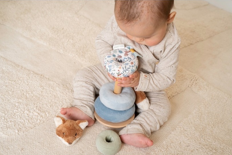 Jokaisessa suloisessa renkaassa on ainutlaatuinen muotoilu, joka on saanut inspiraationsa metsän ystävistä. Tämä keinuva rengaspyramidi on suunniteltu parantamaan käden ja silmän koordinaatiota hauskan leikin kautta. FSC-puuta.