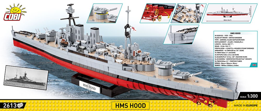 | description | HMS HoodHMS Hood to brytyjski krążownik liniowy z okresu międzywojennego i II wojny światowej. Zwodowany w 1918 roku, wszedł do służby dwa lata później. Mierzył aż 262,3 m długości. Głównym uzbrojeniem artyleryjskim krążownika było osi |