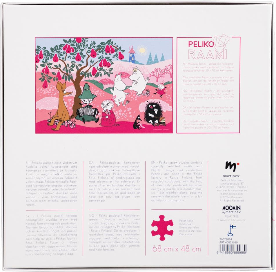 In this 1000 piece Pear Tree puzzle, Moomin and his friends dance and play in the shade of a pear tree. The finished puzzle measures 68 x 48 cm and is made in Finland from recycled cardboard. The puzzle offers a challenge for all puzzle lovers.