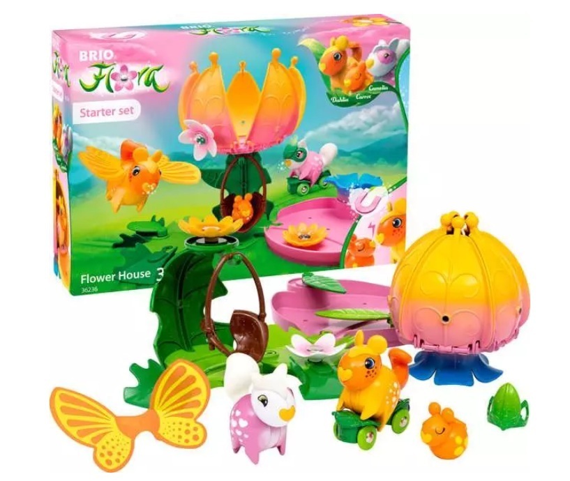 Kukkatalo-lelusetti kutsuu mukaan taianomaisen BRIO Flora -maailman seikkailuihin! Lumoavan lelun hahmot ihastuttavat kirkkailla väreillään ja hauskoilla ominaisuuksillaan, kuten piilomagneeteilla.