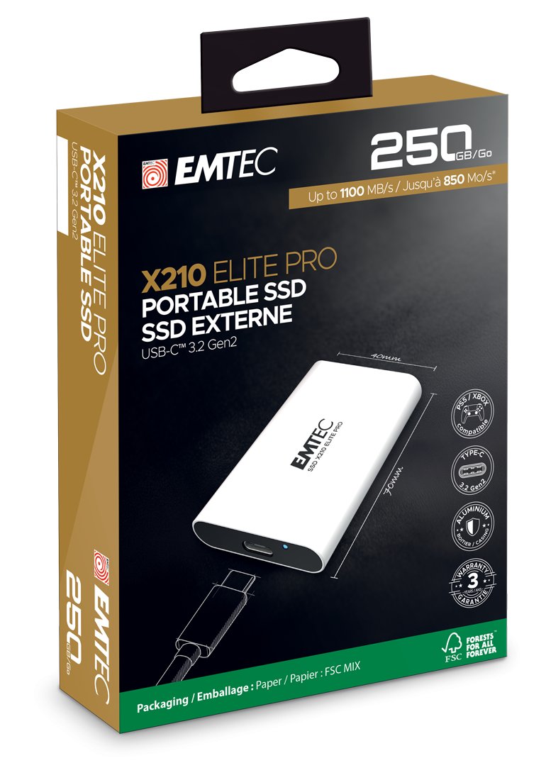 Emtec SSD 3.2Gen2 X210 Elite Pro 250 GB Pārnēsājams (ECSSD250GX210P)