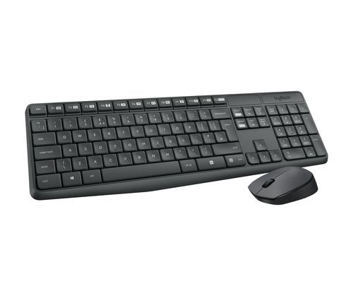 Logitech MK235 Wireless Keyboard and Mouse Combo. Keyboard form factor: Full-size (100%). Keyboard style: Straight. Connectivity technology: Wireless, Device interface: RF Wireless, Keyboard layout: QWERTZ, Recommended usage: Universal. Product colour: Grey. Mouse included