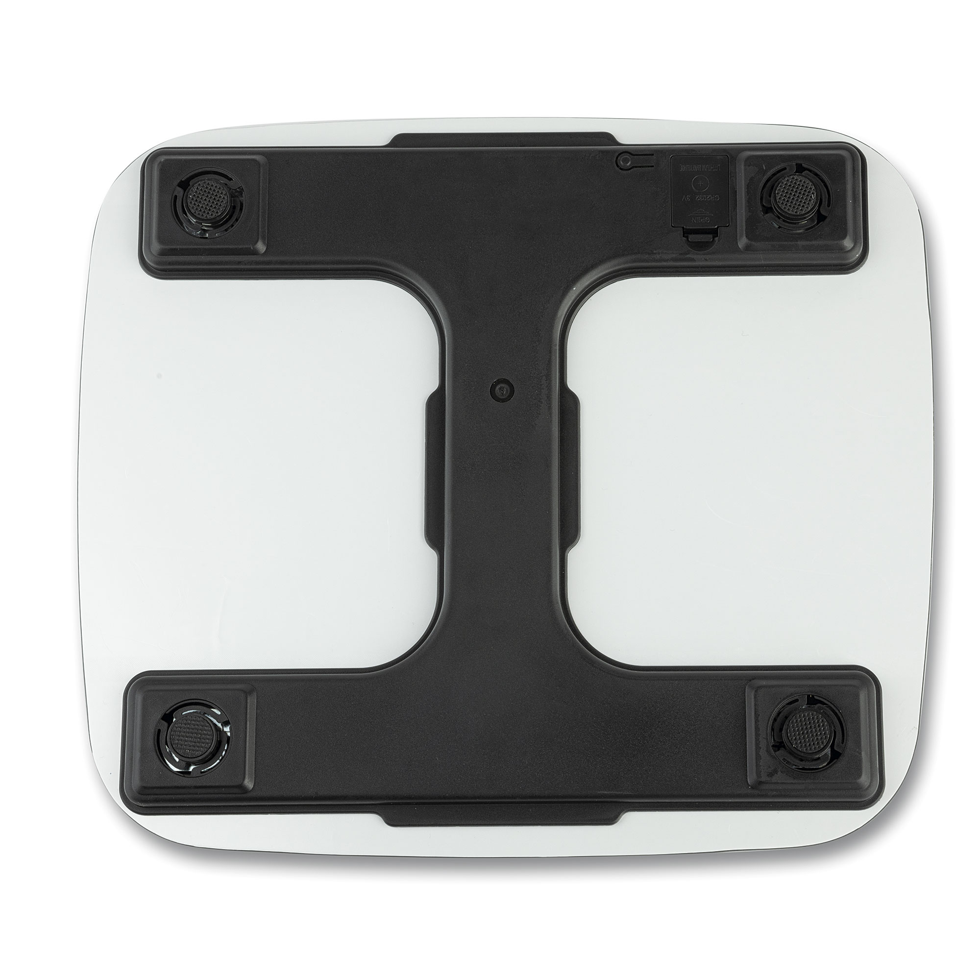 Capacity 180 kg. Graduation 100 g. 5 mm thick Temperit safety glass base. Large LCD viewfinder. 4 digits. 4 sensors. High accuracy. Automatic connection. Automatic disconnection. Overweight indicator. Low battery indicator. Switch for conversion kg / lb / st: lb It works with 1 long-life CR2032 lithium battery (included).