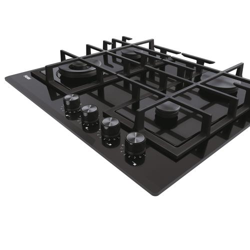 Haier's Gas On Glass Series 4 an elegant combination of glass and black cast iron to offer minimalistic look to your kitchen. Premium knobs and the sleek dark-glass surface complete the sophisticated look of this hob surface, while the Preci Flame ensures that performance is optimised through the choice of 9 precise heat settings for each flame, including powerful big burner.Haier Series 4 HAVG6BF4HB/1. Product colour: Black, Appliance placement: Built-in, Hob width size: 59 cm. Control type: Rotary, Control position: Top right. AC input voltage: 220 - 240 V. Width: 595 mm, Depth: 510 mm, Height: 47.4 mm. Package width: 650 mm, Package depth: 570 mm, Package height: 570 mm