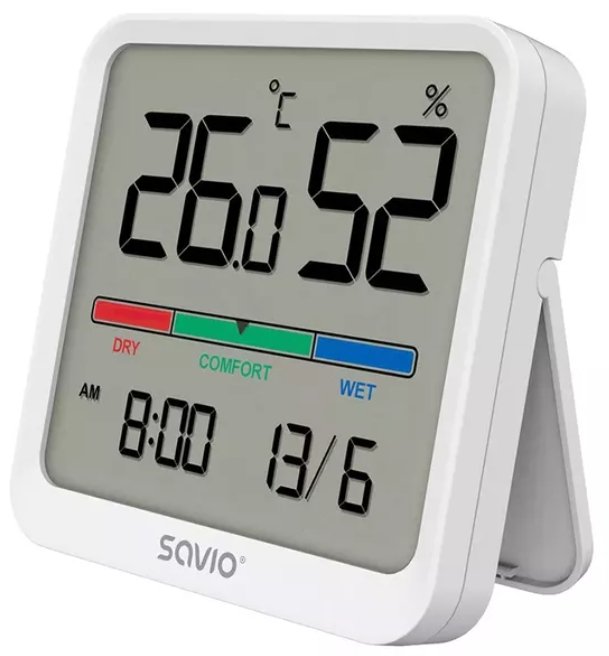 Temperatūras mitruma sensors iekštelpu LCD ekrāns Pulkstenis datums Magnētiskais turētājs CT-01/W Balts