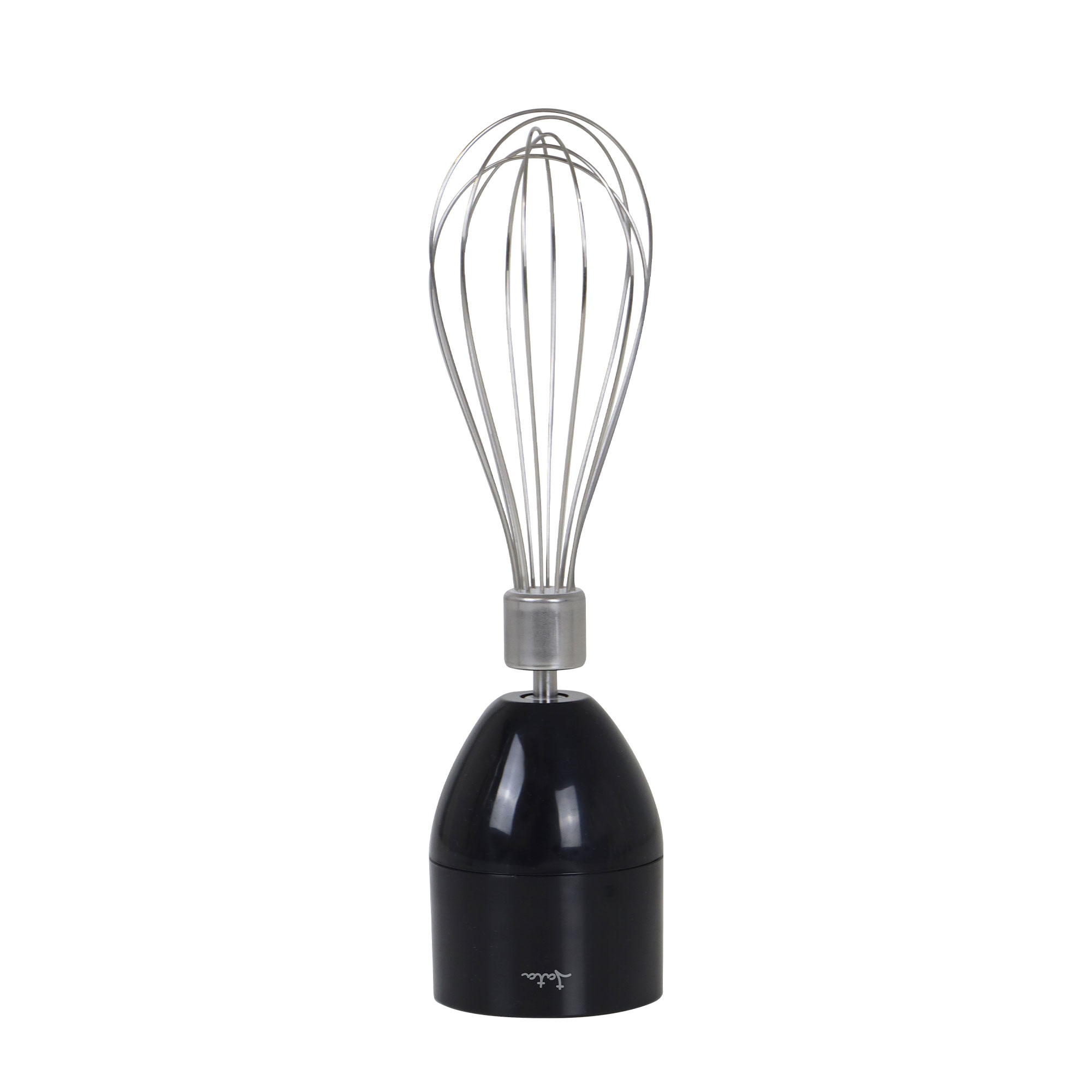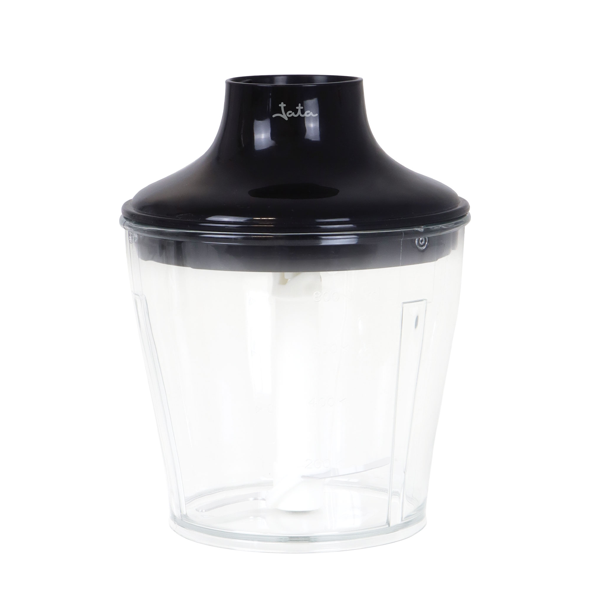 Turbo power hand blender 1,200 W power Adjustable speed selector and Turbo function Ergonomic grip design Anchoring system for easy coupling and uncoupling Detachable stainless steel foot Hanging ring 4 high-strength stainless steel blades Whisk, chop and mash Included accessories: stainless steel whisk, chopper and 500 ml measuring cup Voltage 230 V RPM: 17000 +/-10% Manufacturer Jata Power 1200 W Shaft material Stainless steel Blade material Stainless steel Turbo speed Yes Splash protection Yes Number of attachments 3 Chopper Yes Measuring cup Yes Measuring cup capacity (l) 0.5 Puree tool Yes Color Steel, black, green Special Notes RPM 17000 ± 10%; ergonomic grip; anchoring system for quick coupling; hanging ring